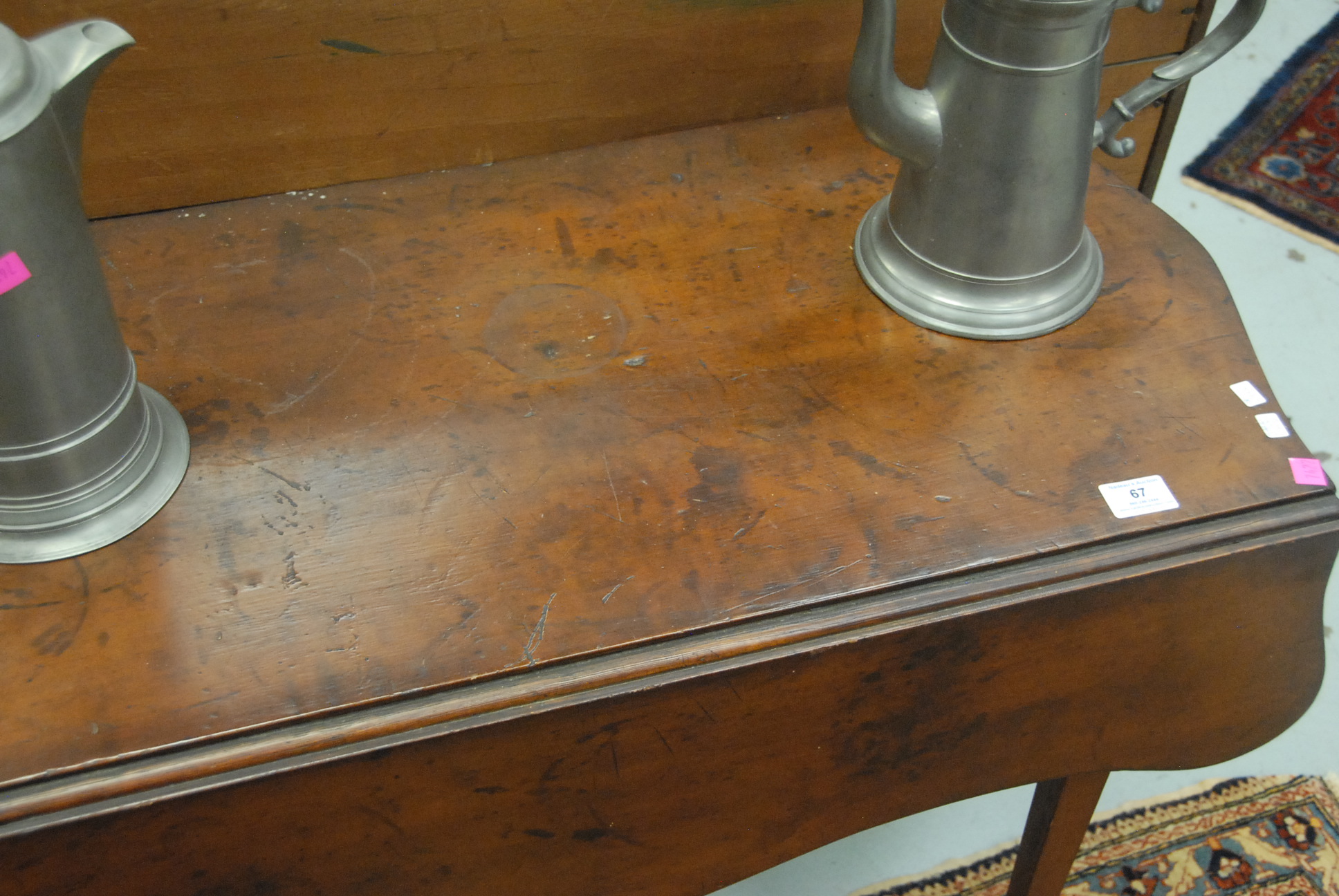 Lot 67: Federal cherry table with shaped drop leaves on square tapered legs, circa 1790-1810. ht. 28 in. opens to 35 in. Provenance: Property from the Estate of Elizabeth and Edward Wallace of The Tracy House in Meriden, Connecticut.