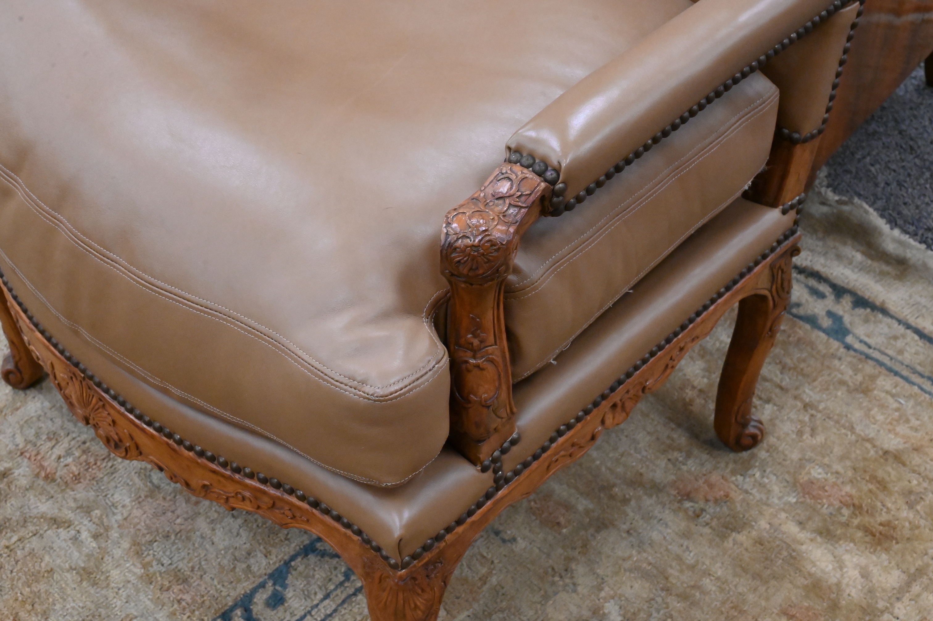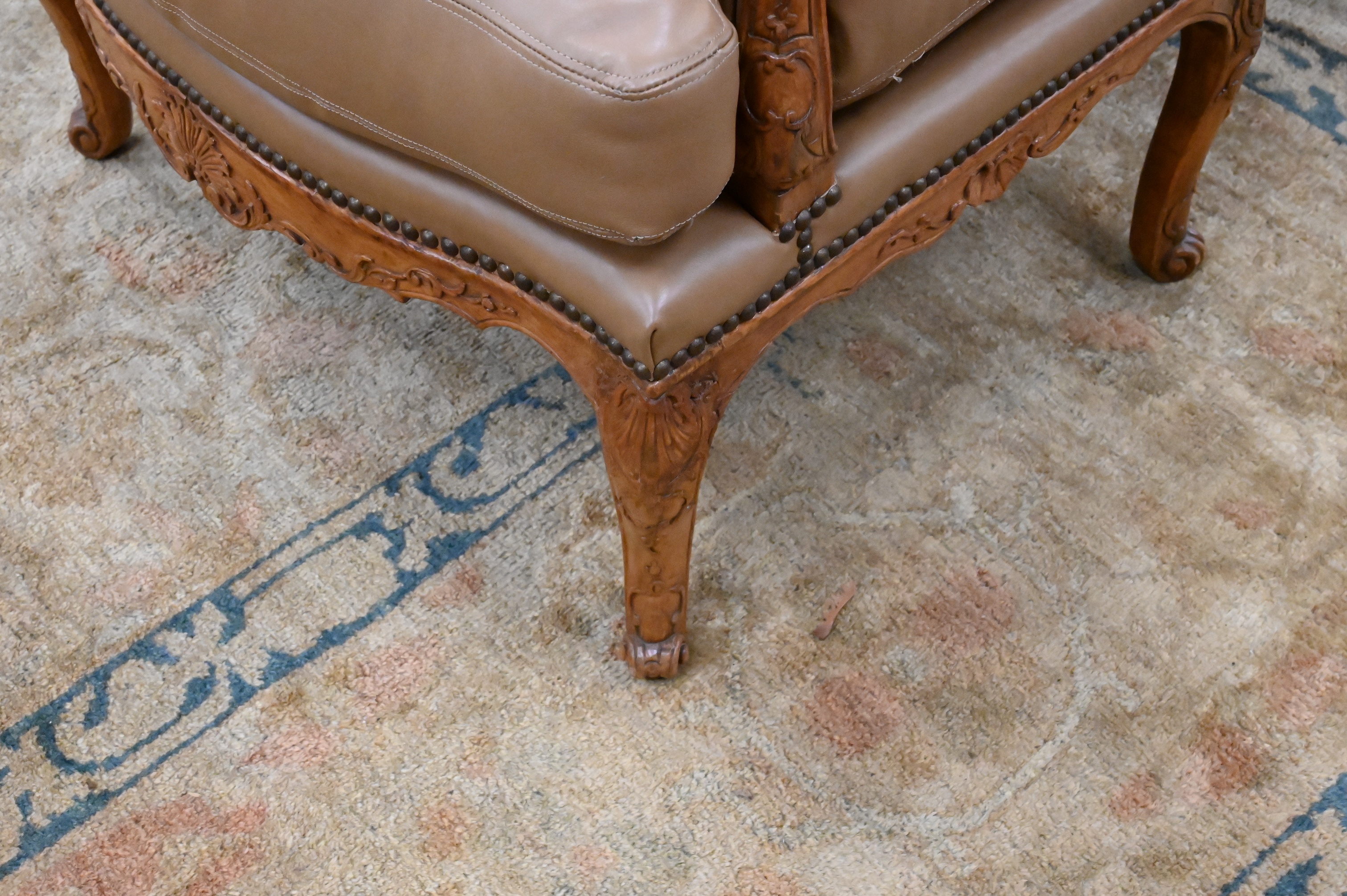 Lot 67: Louis XV Oversized Leather Upholstered Carved Walnut Fauteuil