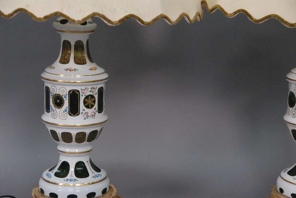 Pair of overlay glass table lamps.