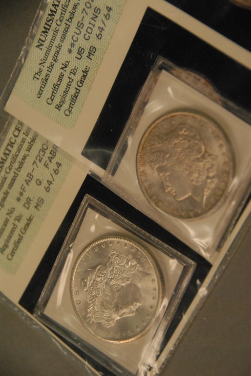 Two silver dollars 1878-CC NCI 64/64 and 1883-CC NCI 64/64.