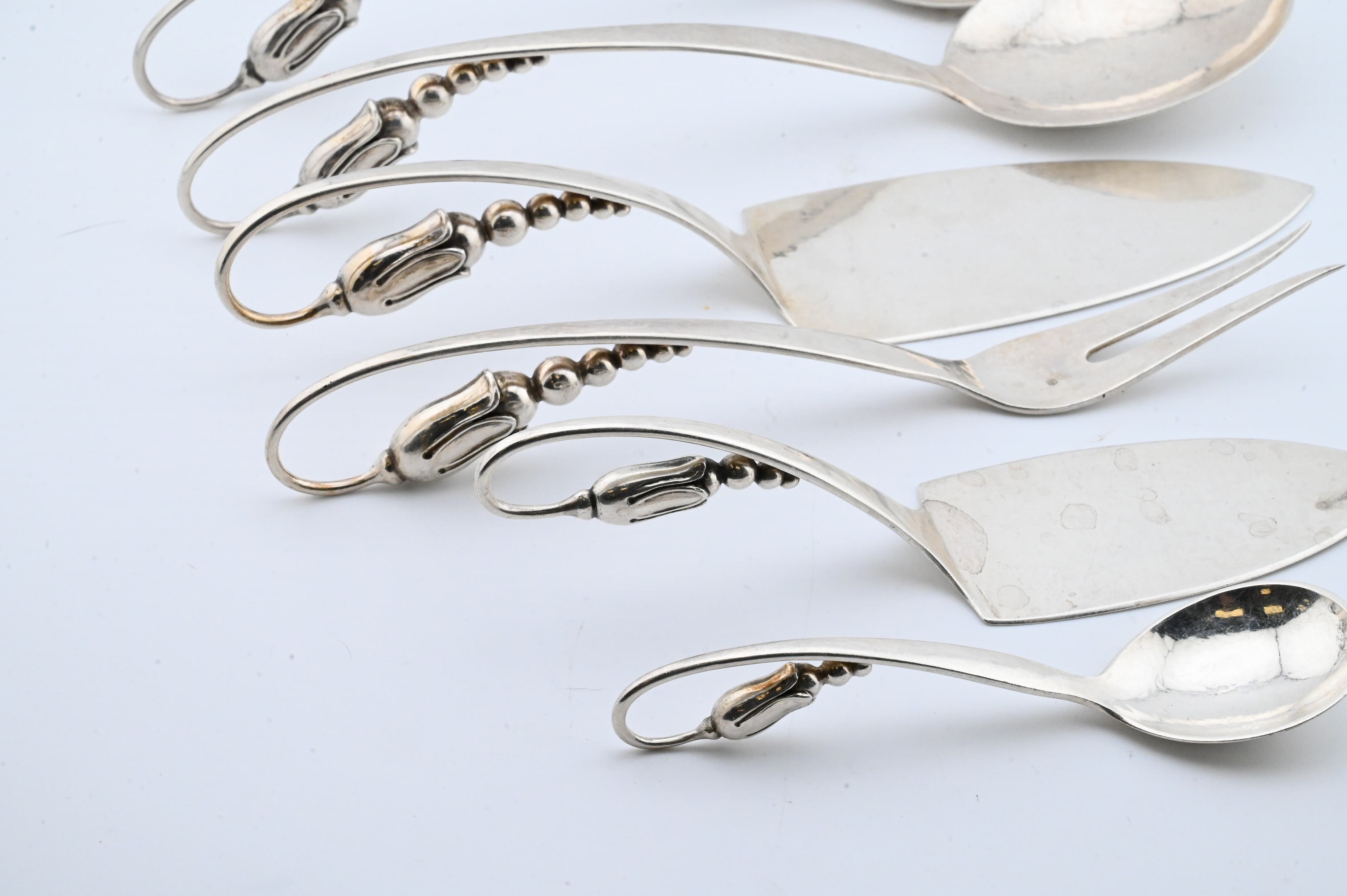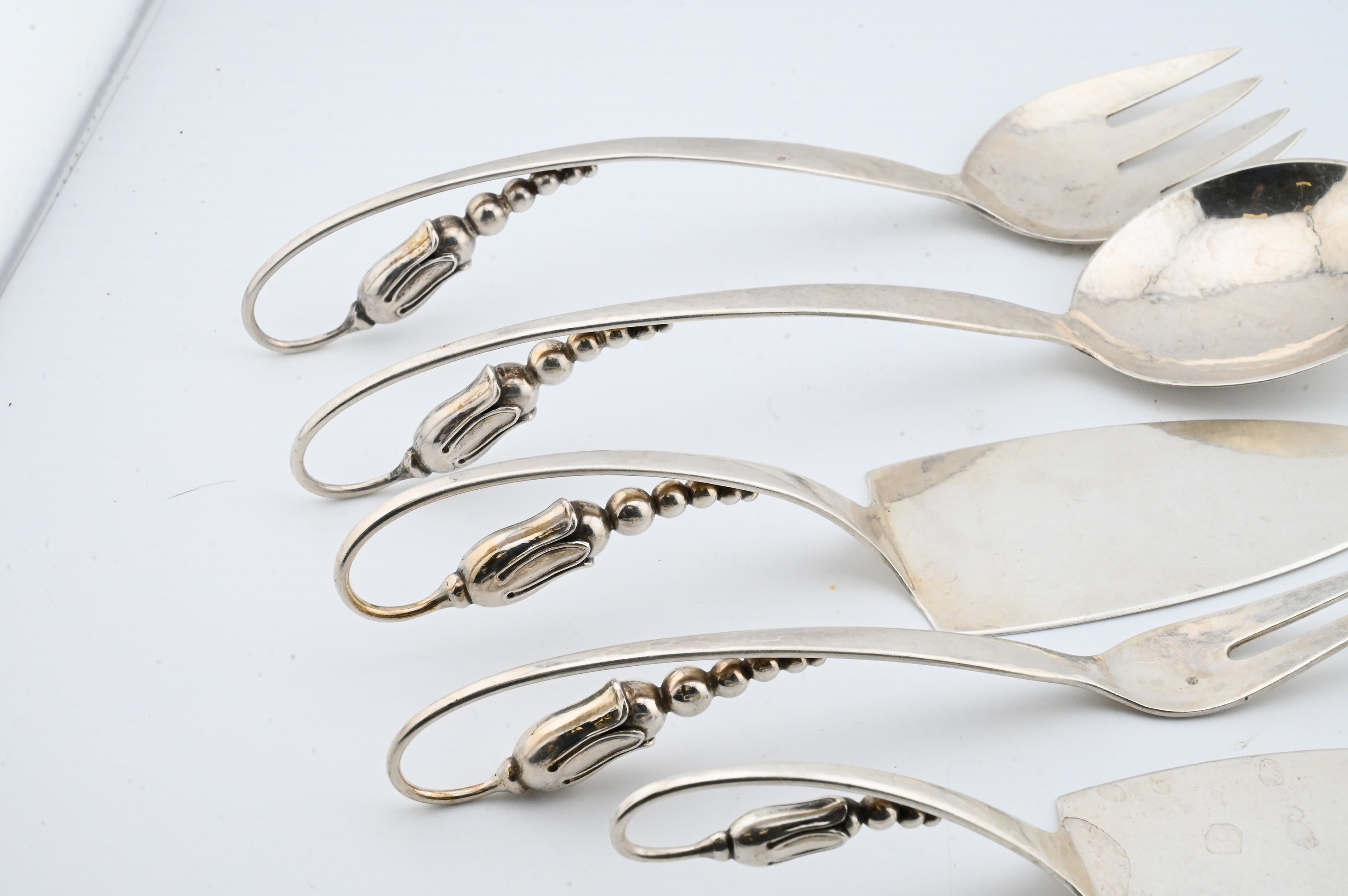 Lot 672: Set of Six Danish Sterling Silver Serving Pieces by O. Mogensen