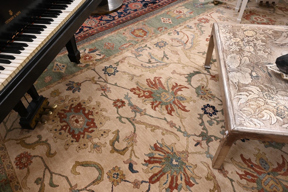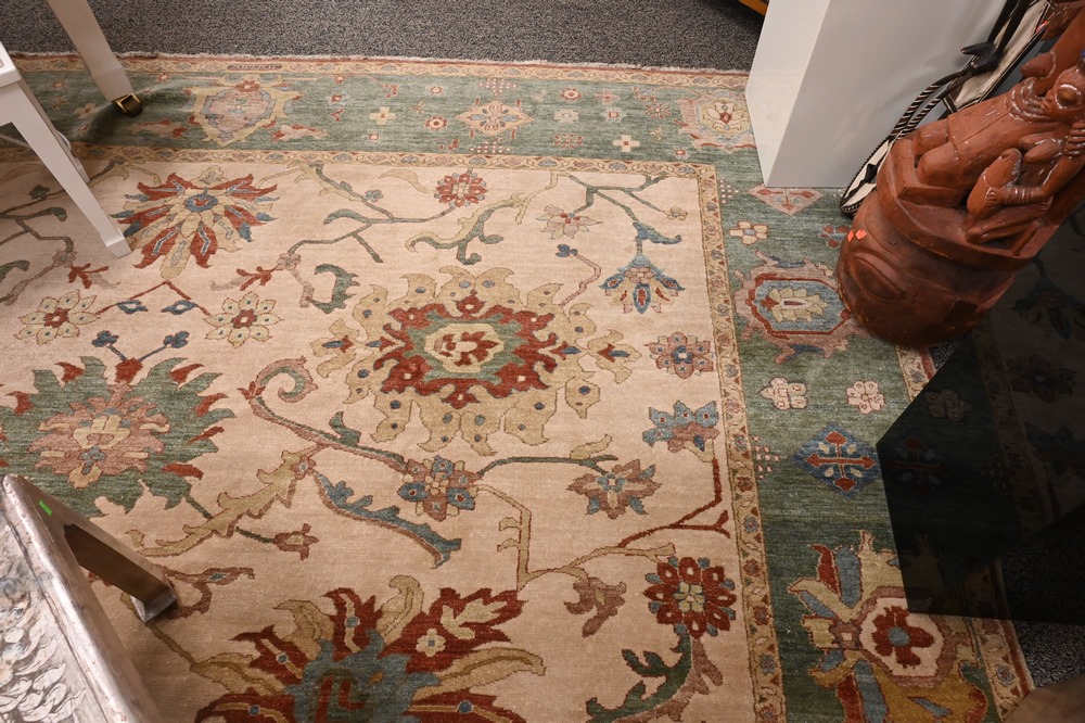 Lot 672: Ziegler Oriental Carpet, having large flowers, 10′ 3″ x 13′ 6″.