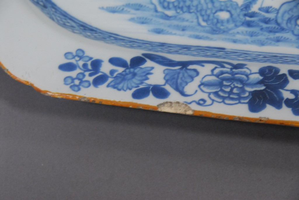 Blue and white early Delft platter two chips. – lg. 19 1/2in. wd. 15in.