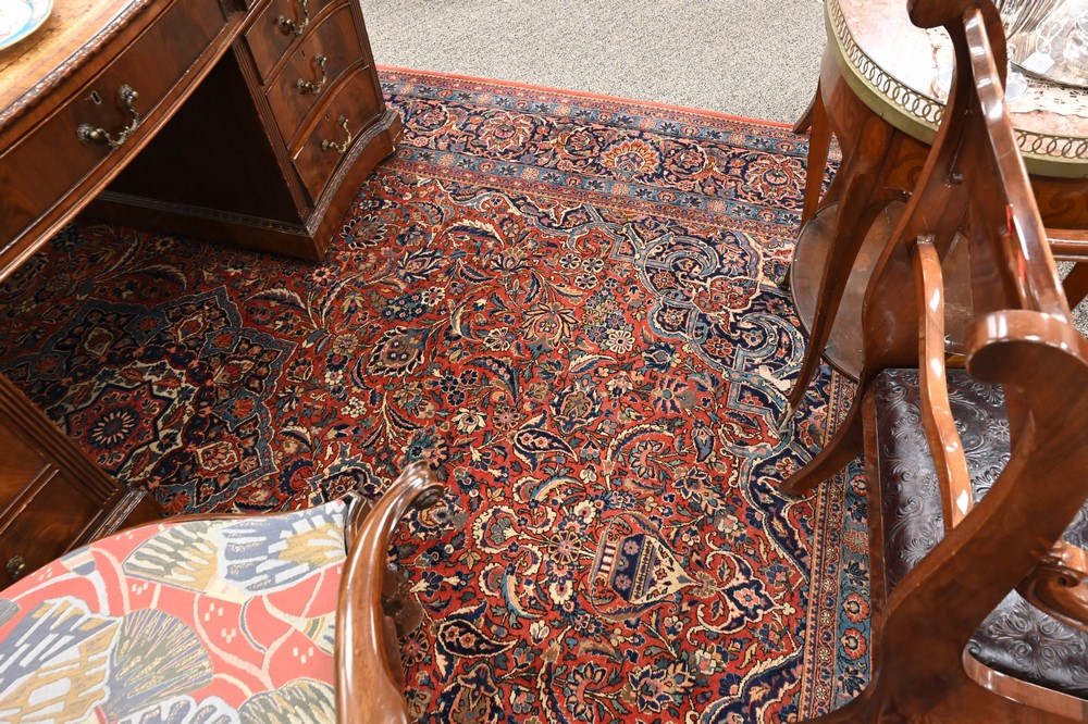 Lot 673: Kashan Oriental Carpet, 9′ x 12′ 6″.