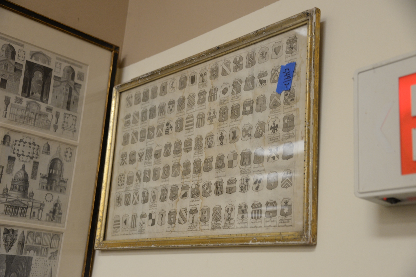 Lot 673: Nine Piece Framed Group, to include two European coats of arms charts two hand-colored engravings with Asian scenes, signed P.C. Ca…