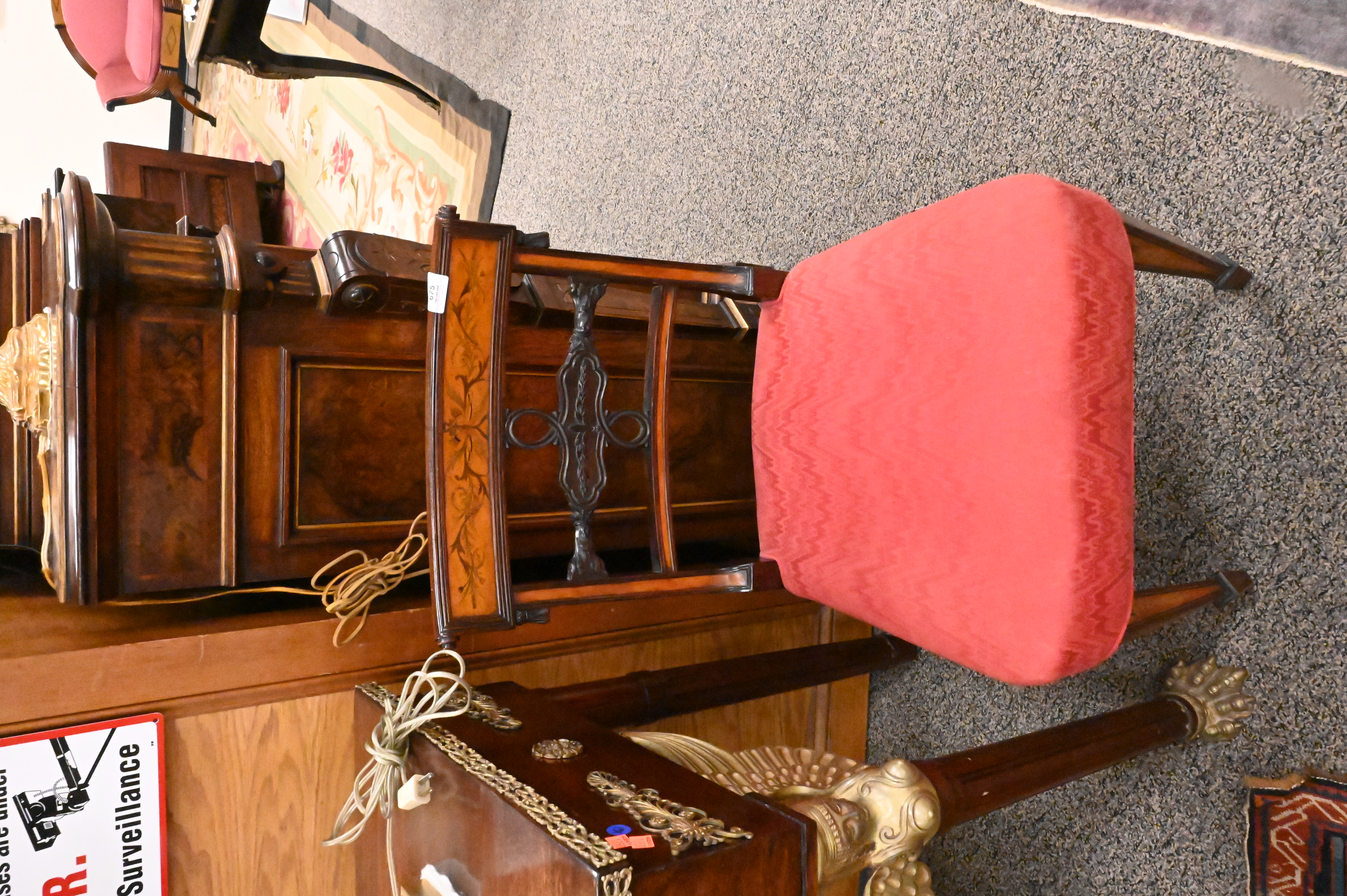 Lot 675: A Pair of Late Regency Style Satinwood Inlaid-Mahogany Side Chairs