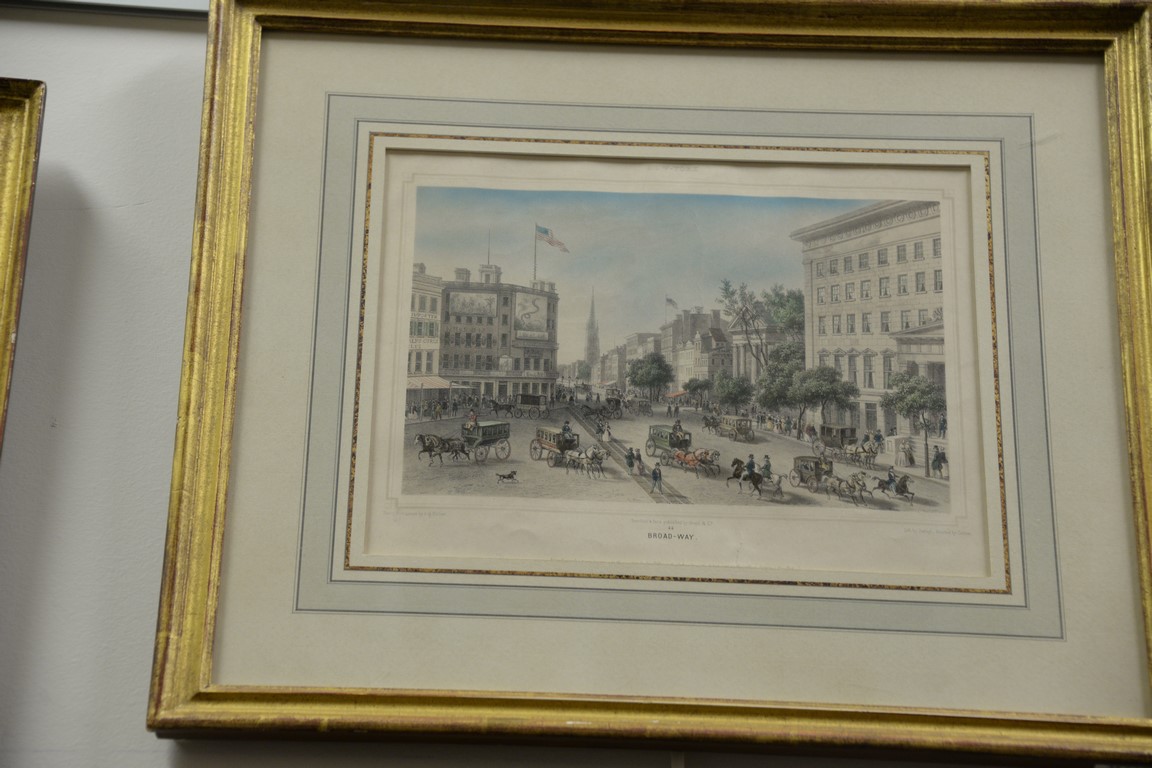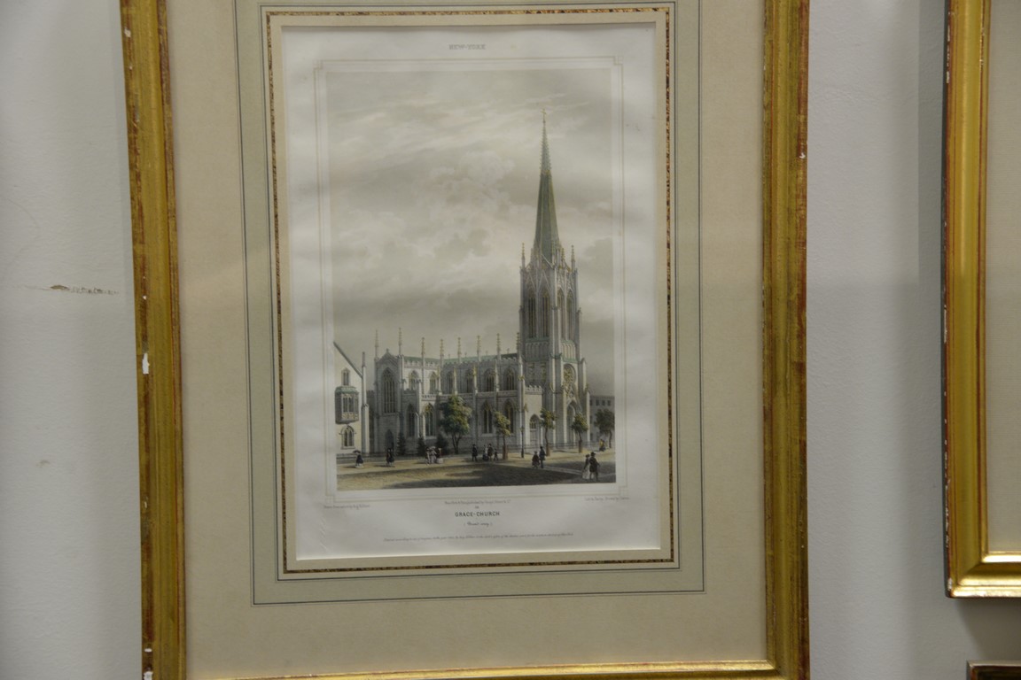 After Augustus Kollner 1813-1900 set of six hand colored lithographs Drawn from Nature by Augustus Kollner From Views of America Cities New York Scenes 1 Tomb of Washington 2 Broad-way 3 Albany General View 4 General View 5 Grace Church 6 Wall Street lithographed by Isidore Laurent Deroy printed by Cattier published in New York & Paris by Goupil Vibert & Co. sight size 9 3/4 x 13 and 13 1/2 x 9 3/4 Provenance: Property from Credit Suisse’s Americana Collection