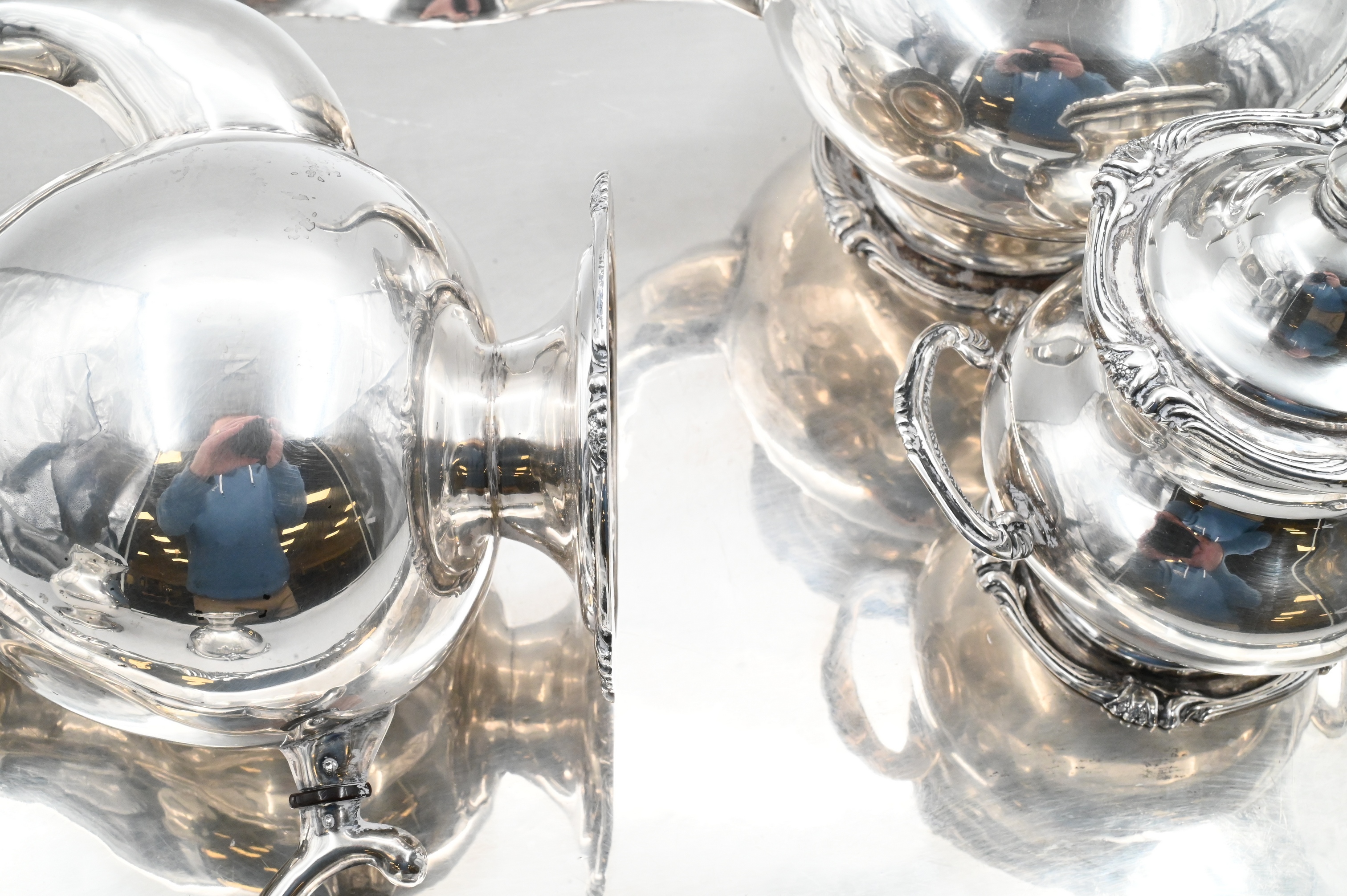 Lot 677: American Sterling Silver Five-Piece Tea and Coffee Service with Tray