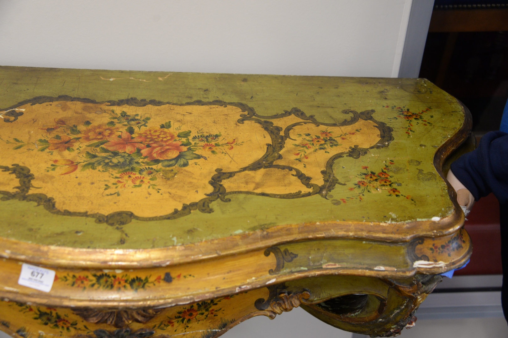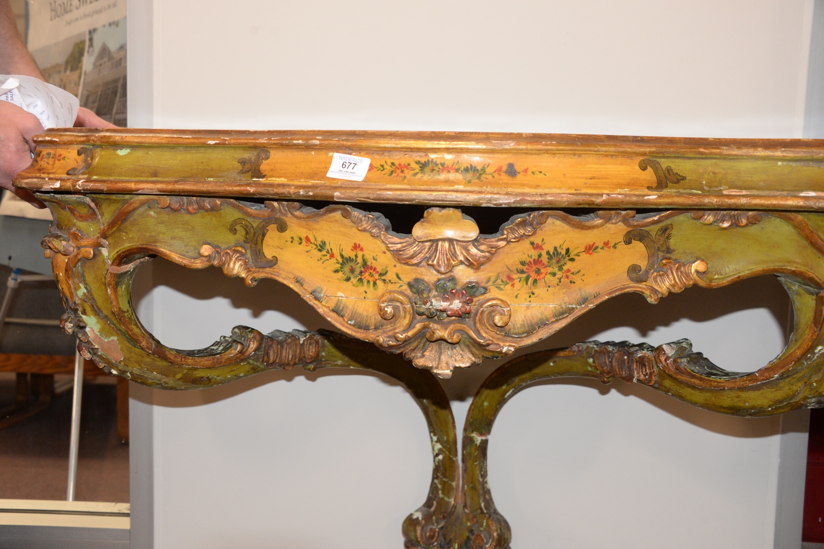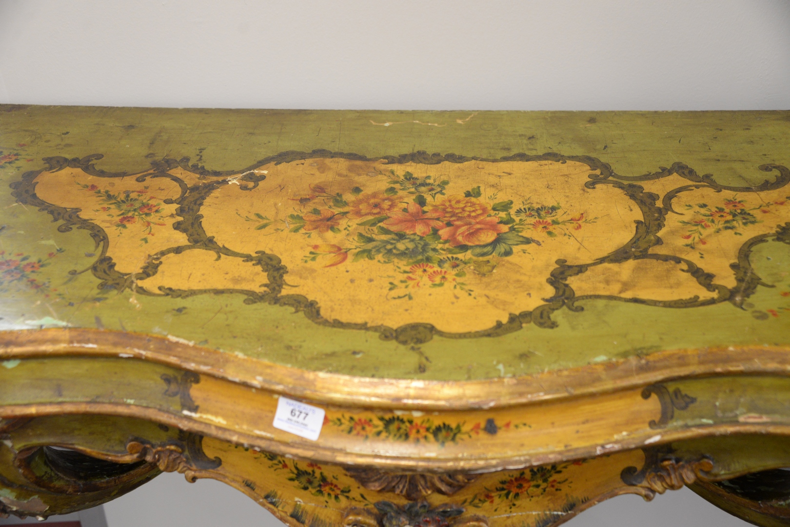 Venetian Painted Console Hanging Shelf, height 32 inches, width 45 inches, depth 21 inches.