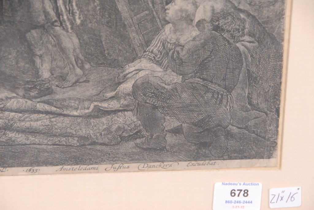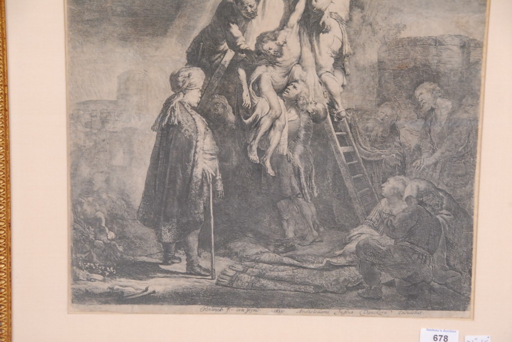 Lot 678: Rembrandt Van Rign THE DESCENTS FROM THE CROSS second plate etching and engraving 1633 – 20 x 16