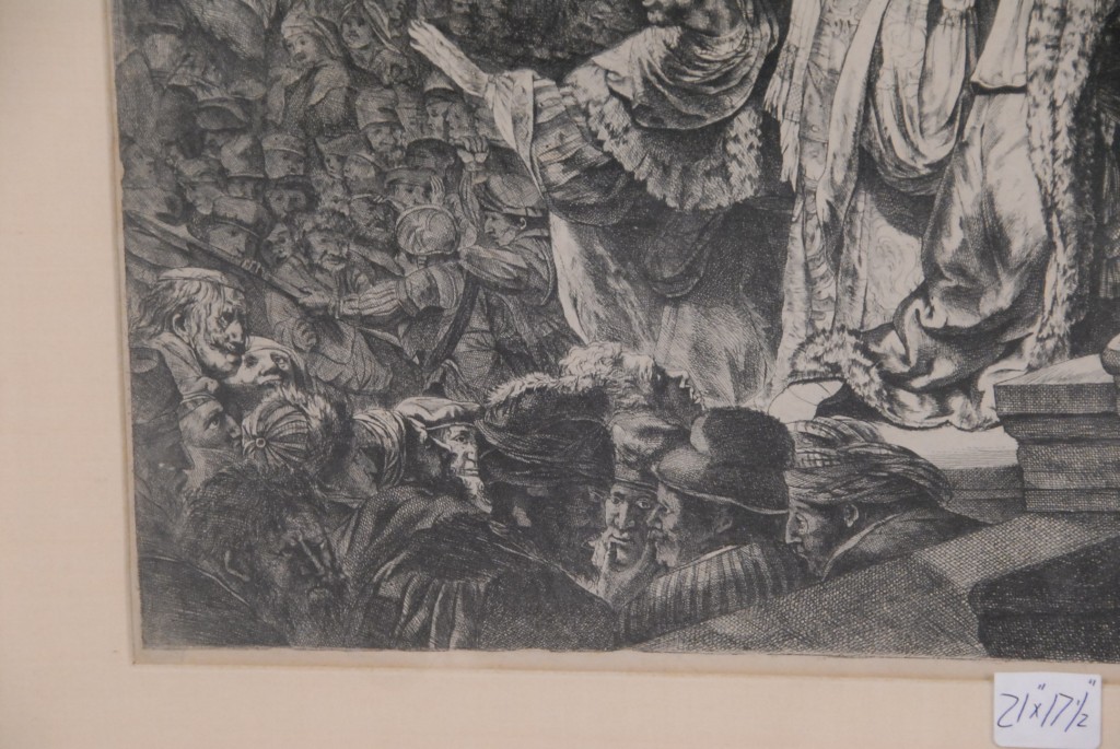 Lot 679: Rembrandt Van Rign CHRIST BEFORE PILATE large plate etching engraving and drypoint 1635-36 – 21 x 16