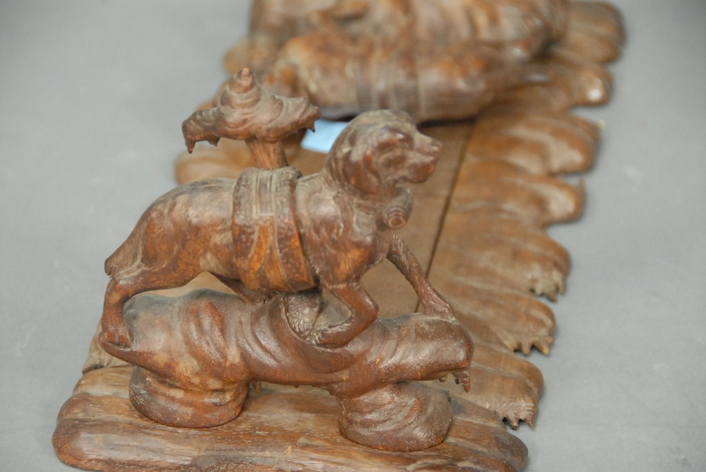 Carved walnut black forest book holder with carved St. Bernards, ht. 5in. lg. 13 1/2in.