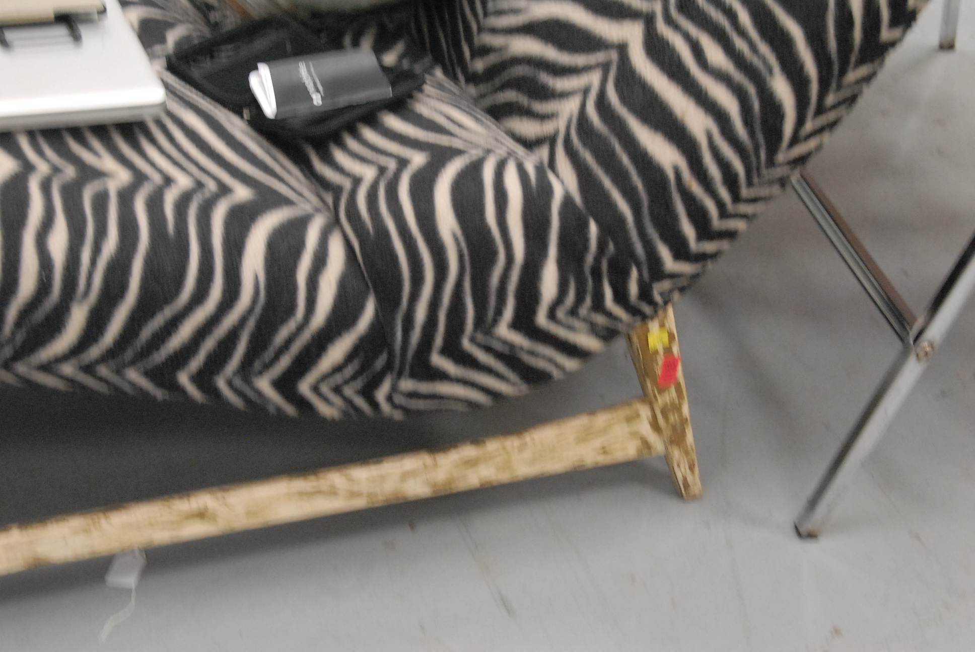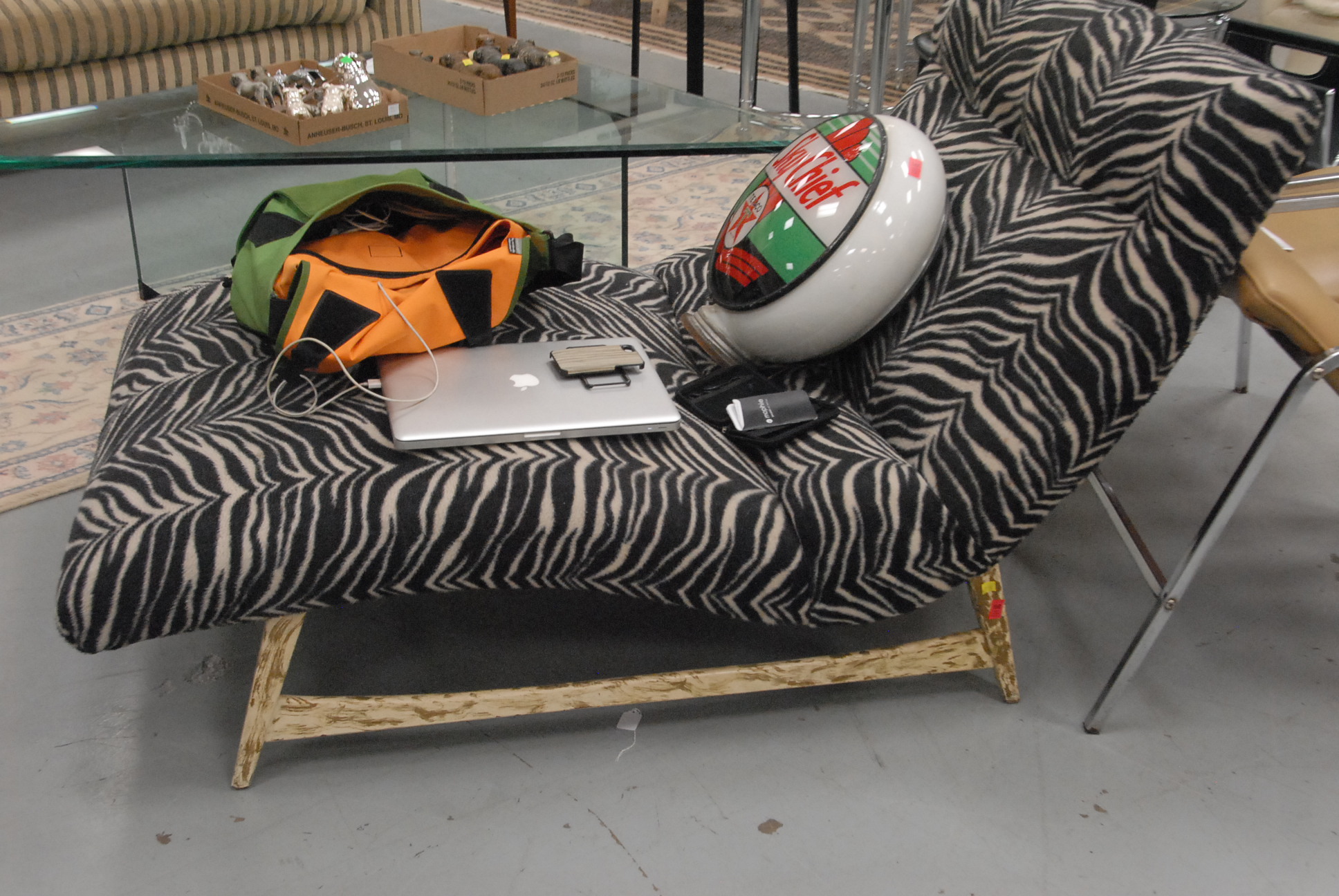 Lot 68: Chaise lounge with faux leopard upholstery on a walnut base with an antiqued finish. Possibly by Norman Fox MacGregor for Valley Uph…