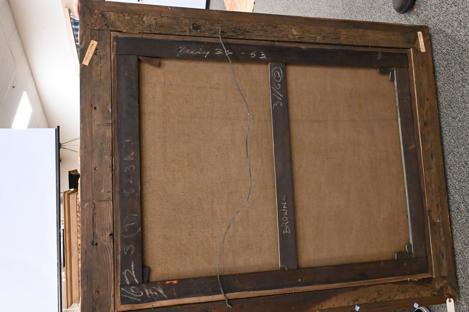 Oil on canvas mounted on cribbed board in carved wood frame