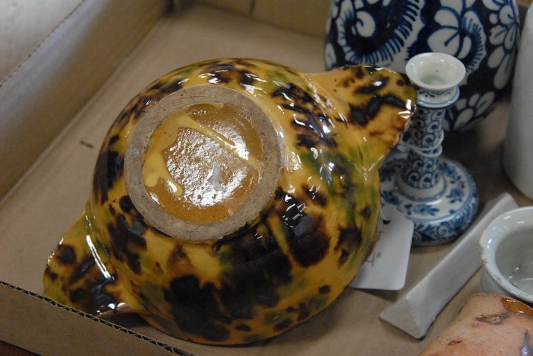 Earthenware lot small cups, small dishes, candle stick, and vase.