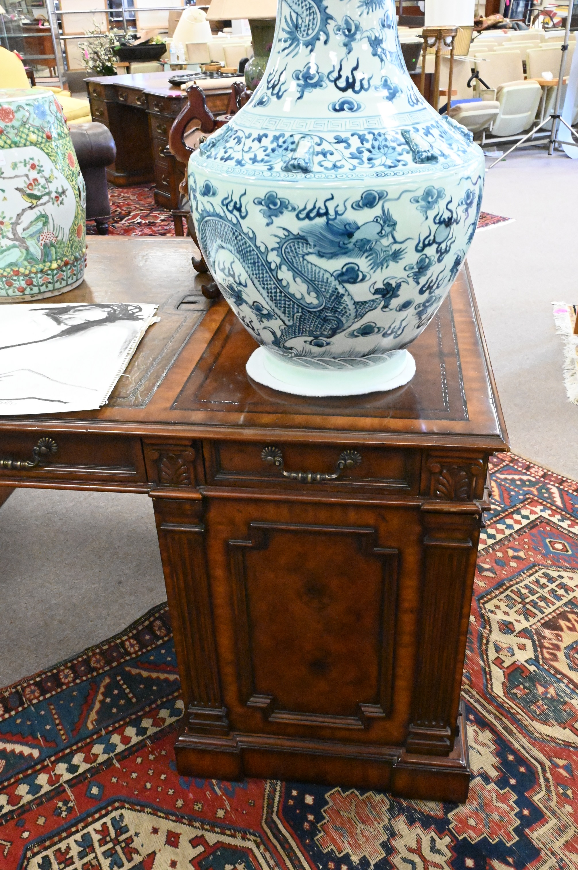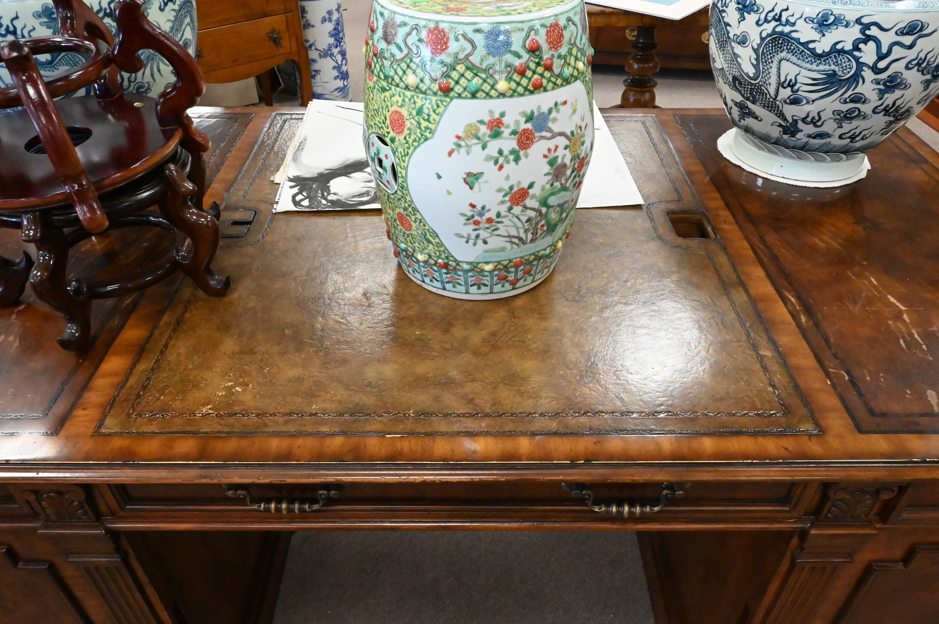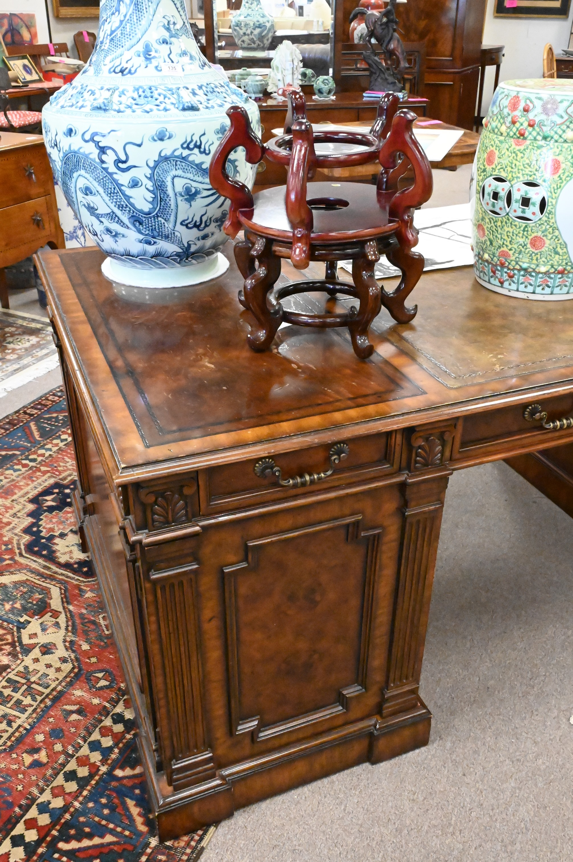 Maitland Smith Three Part Partners Desk, having tooled leather top center, height 30 1/2 inches, top 39″ x 72″