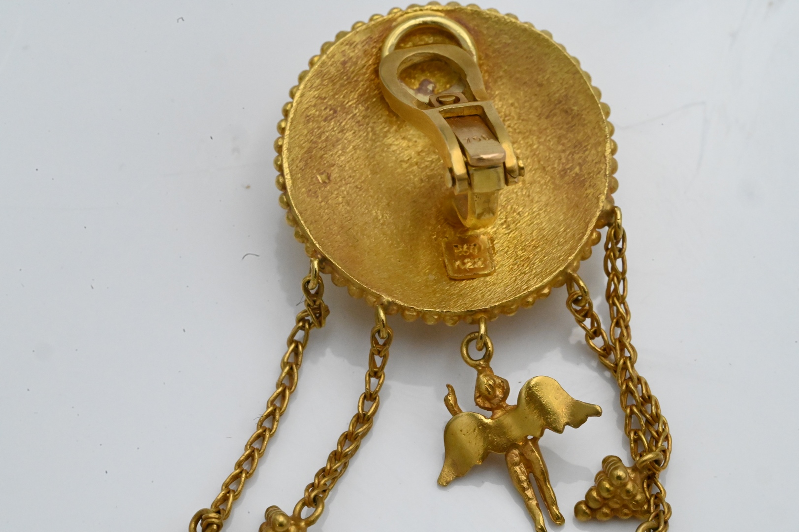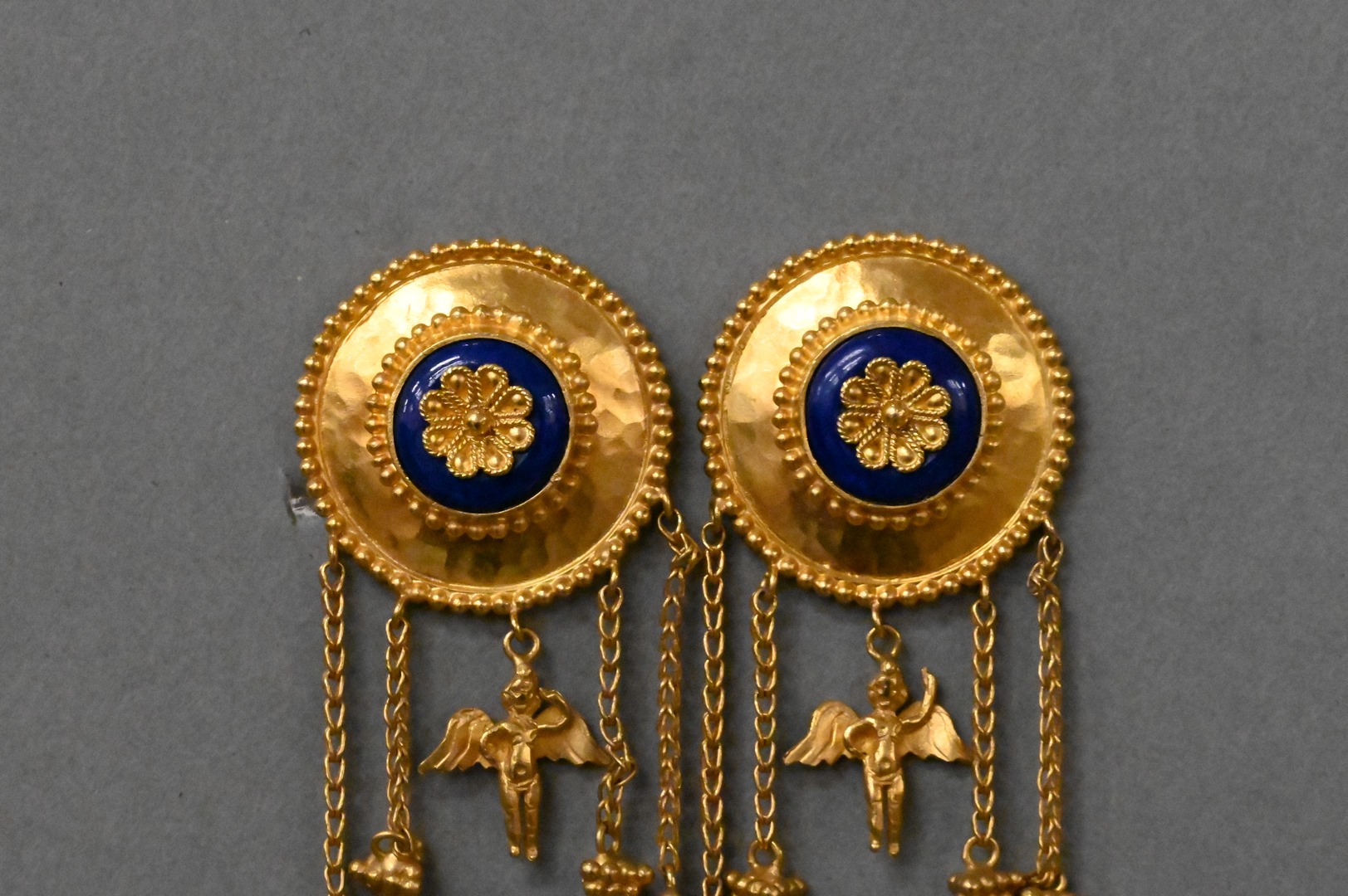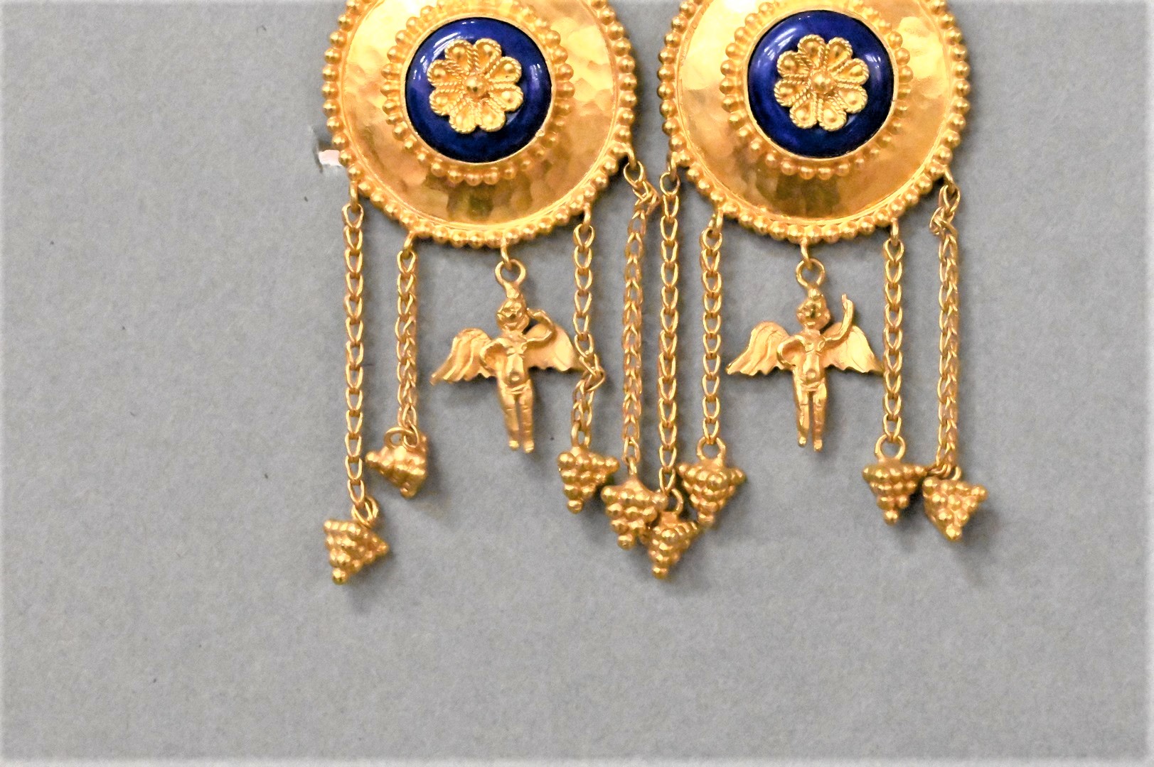 Pair of 22 Karat Yellow Gold Ear Clips having lapis circle marked 22K length 1/2 inch, 31.5 grams Condition: good condition