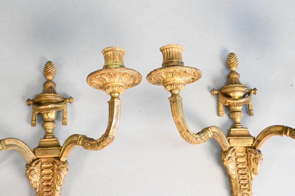 Pair of French Bronze Candle Sconces, having ram heads, height 15 inches.