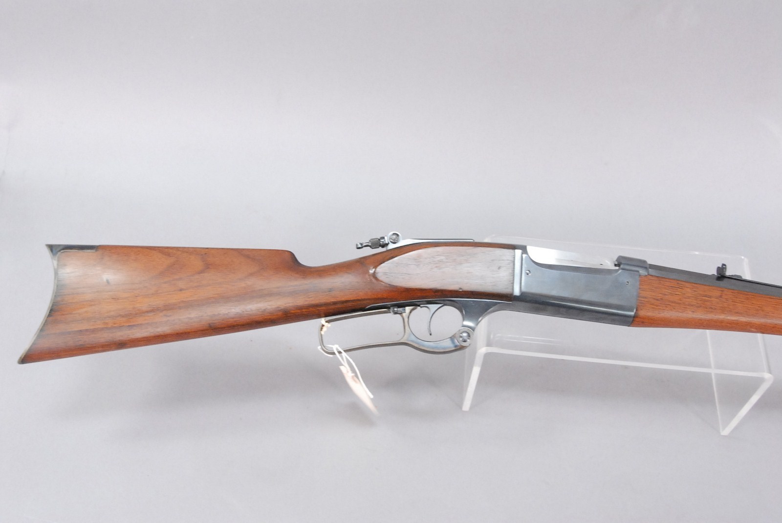 Savage Repeating Arms model 1895 rifle, .303 caliber lever action, 26 1/2 octogon barrel marked Savage Repeating Arms Co., Utica, N.Y. U.S.A., patented Feb 7 1893. July 25 1893. cal .303. 90 SN-7819