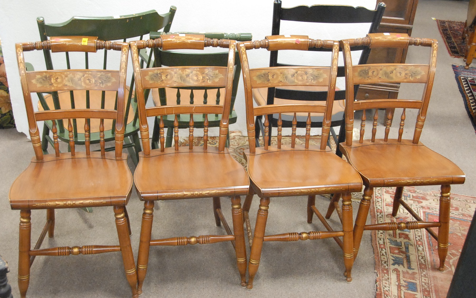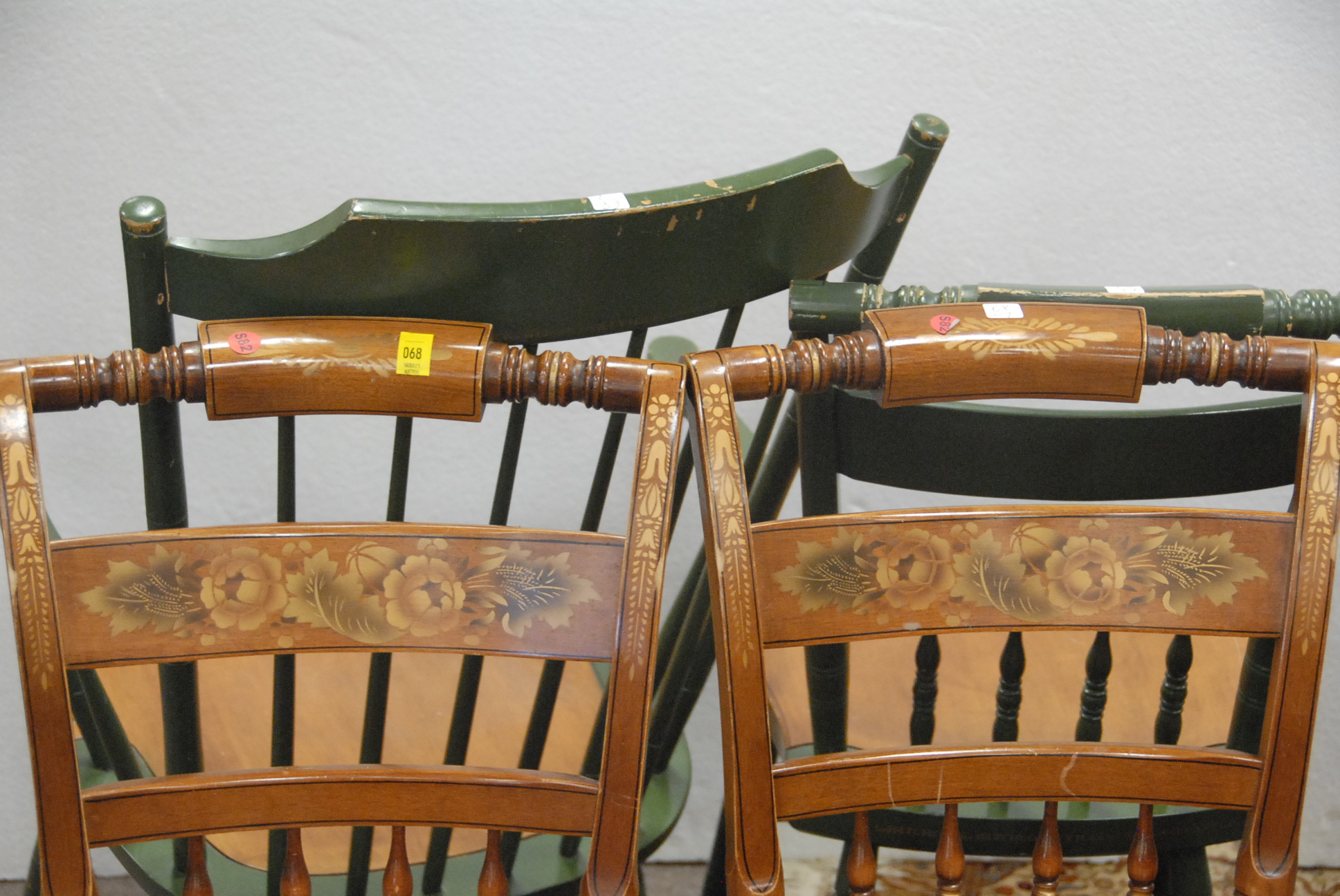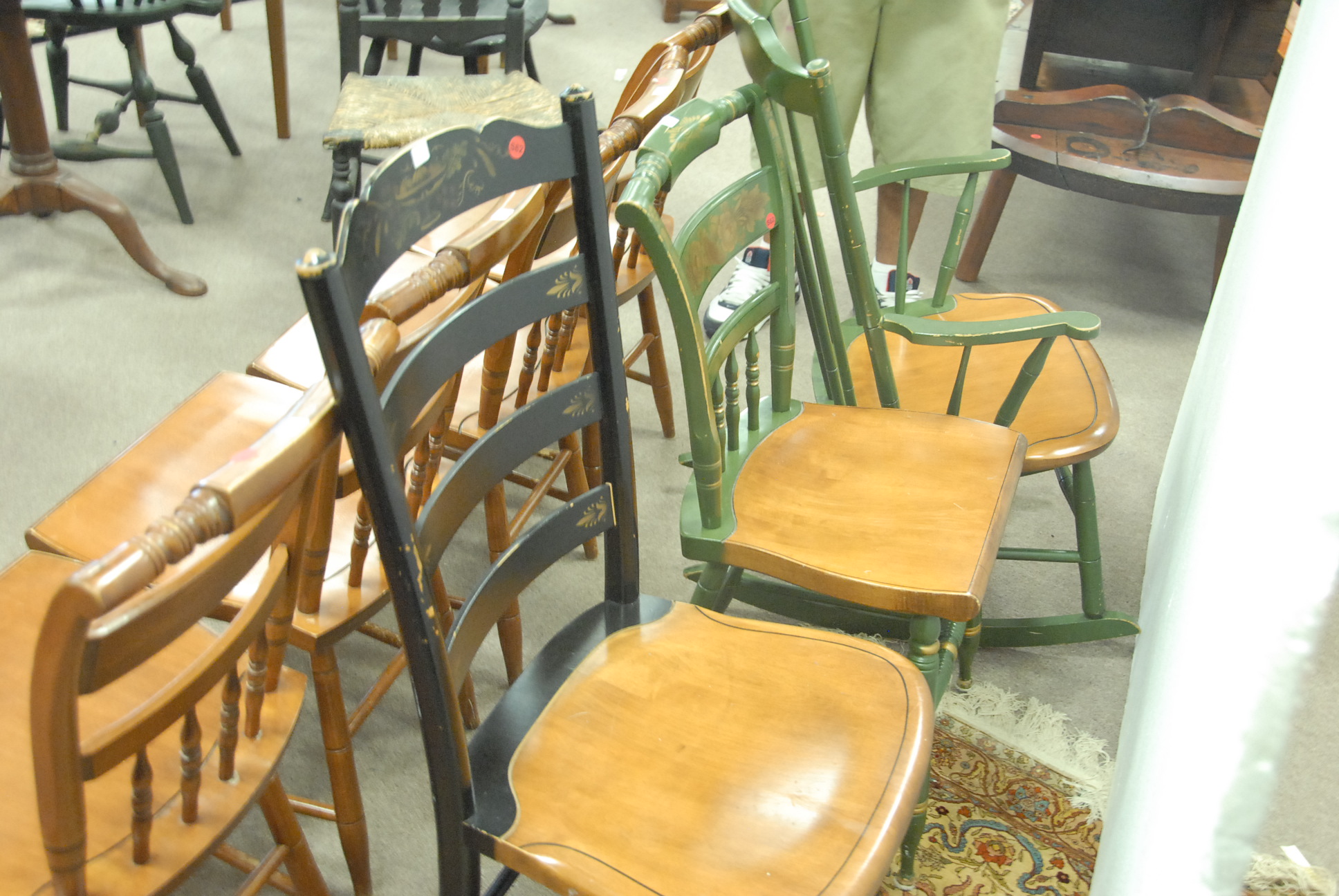 Seven Hitchcock chairs including set of four, rocker, and two odd chairs.