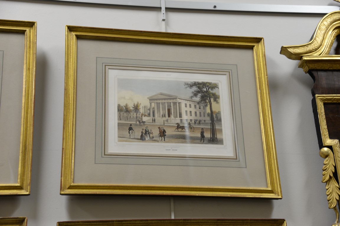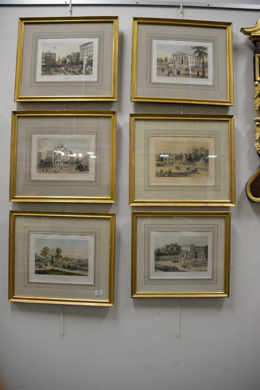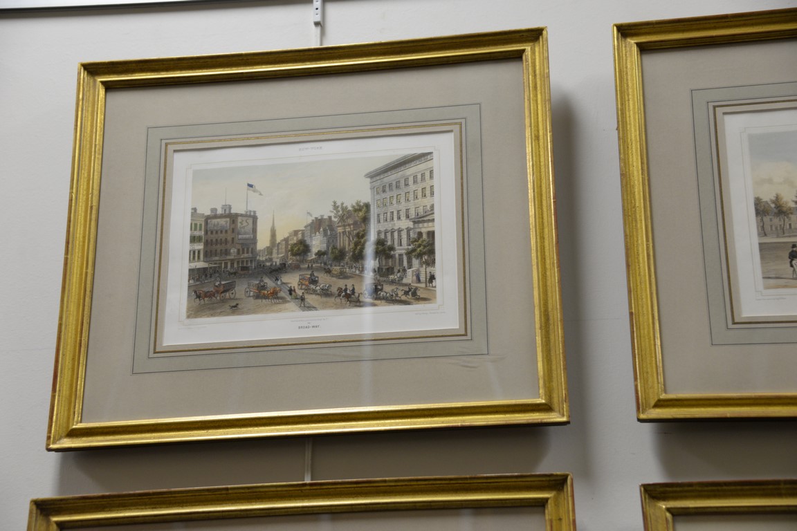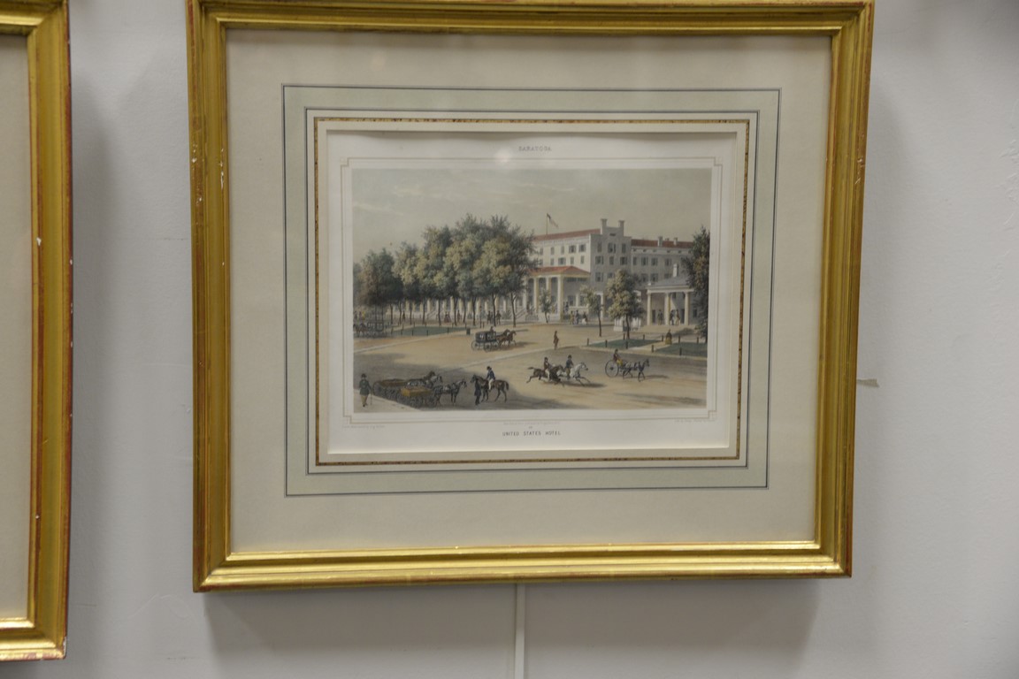 After Augustus Kollner 1813-1900 set of six hand colored lithographs Drawn from Nature by Augustus Kollner From Views of American Cities New York Scenes 1 New York Broadway 2 Albany City Hall 3 Saratoga 4 Troy Court House 5 Saratoga Congress Spring 6 Saratoga United States Hotel lithographed by Isidore Laurent Deroy printed by Cattier published in New York & Paris by Goupil Vibert & Co. sight size 10 x 13 Provenance: Property from Credit Suisse’s Americana Collection