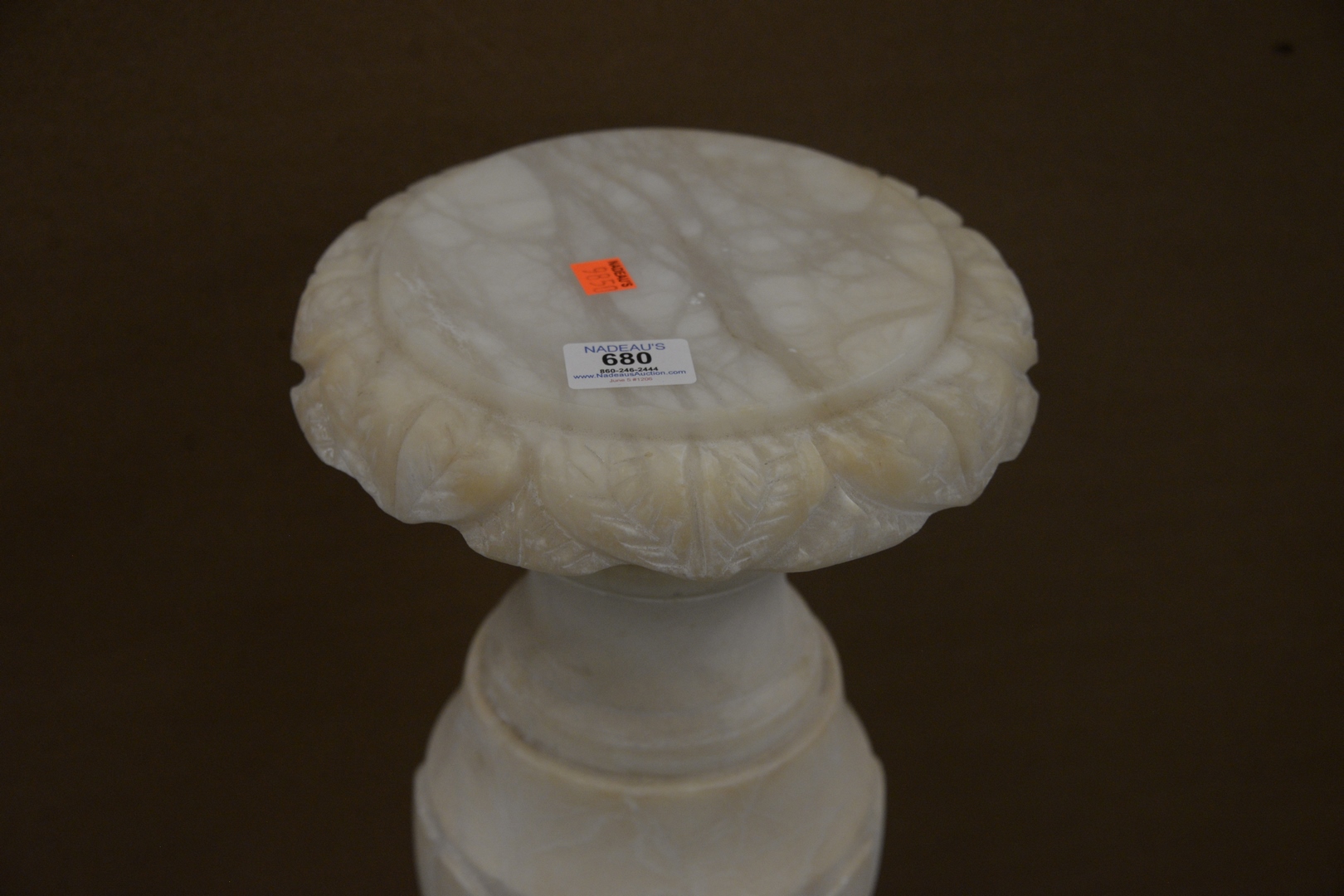 Alabaster Pedestal on fluted column, height 40 inches, diameter 9 1/2 inches.