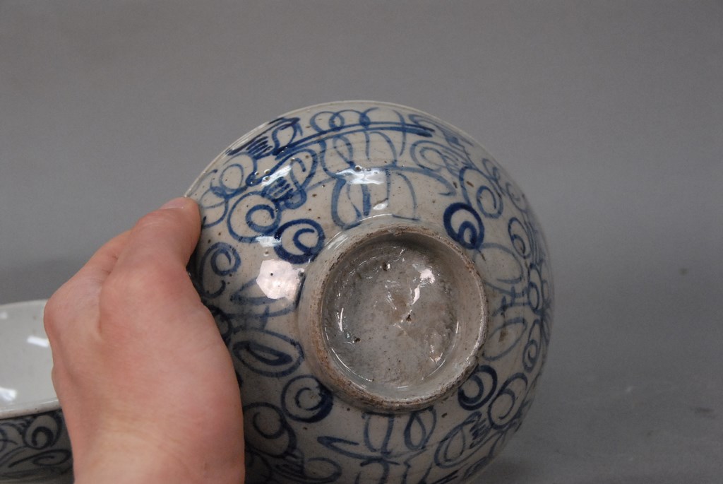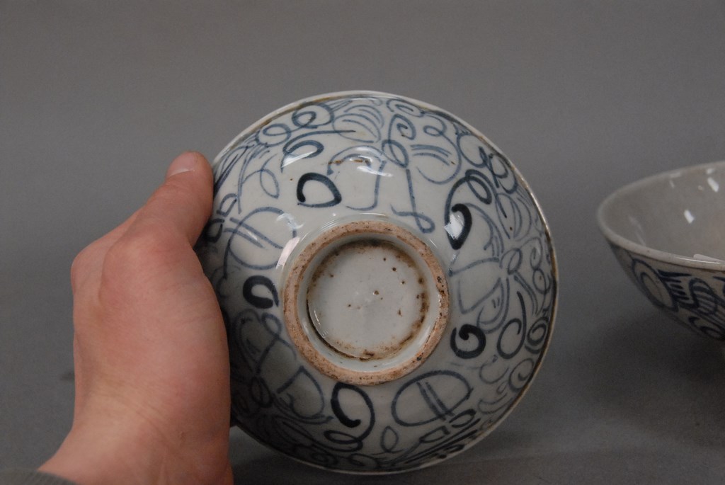 Lot 681: Two late Ming blue and white bowls. ht. 2 1/2in. dia. 6 1/2in.