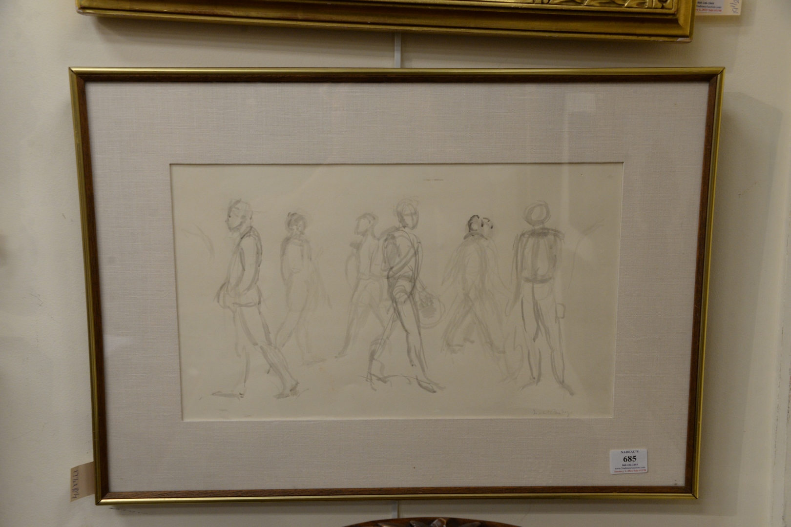 Lot 685: Isabel Wolff Bishop 1902 – 1988 Men, Women Walking watercolor and pencil drawing signed lower right Isabel Bishop 10 x 17 Midt…