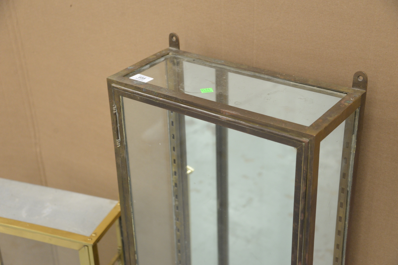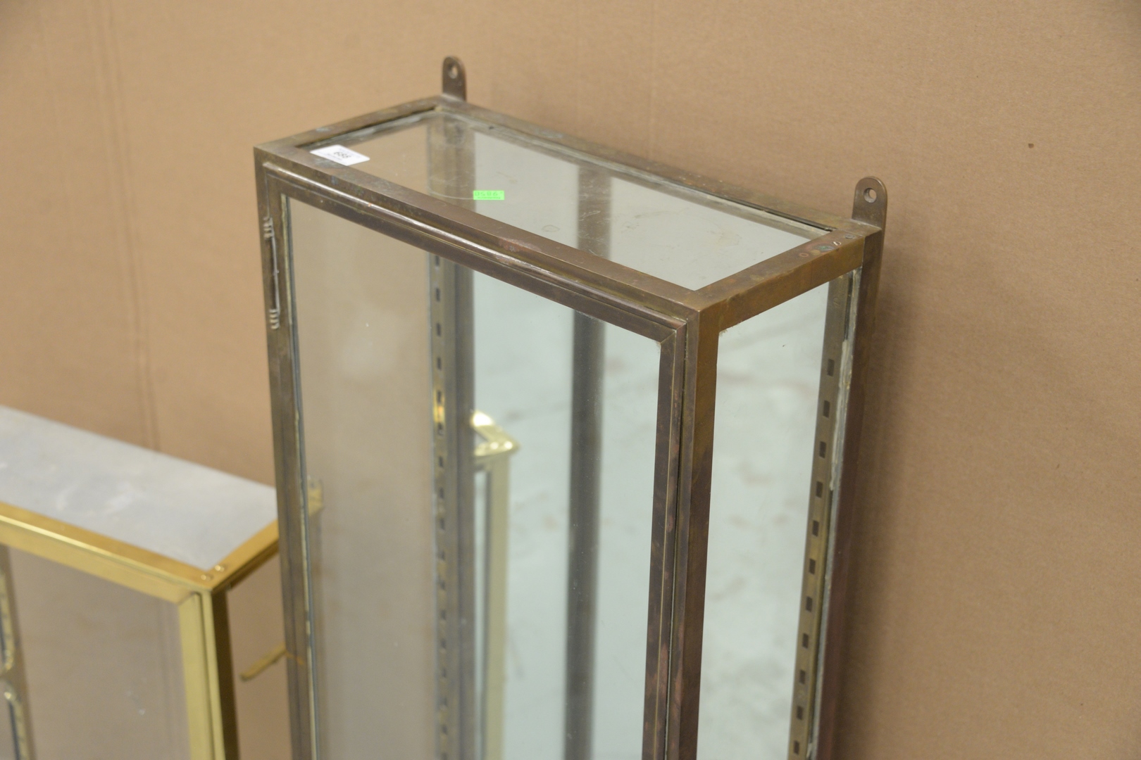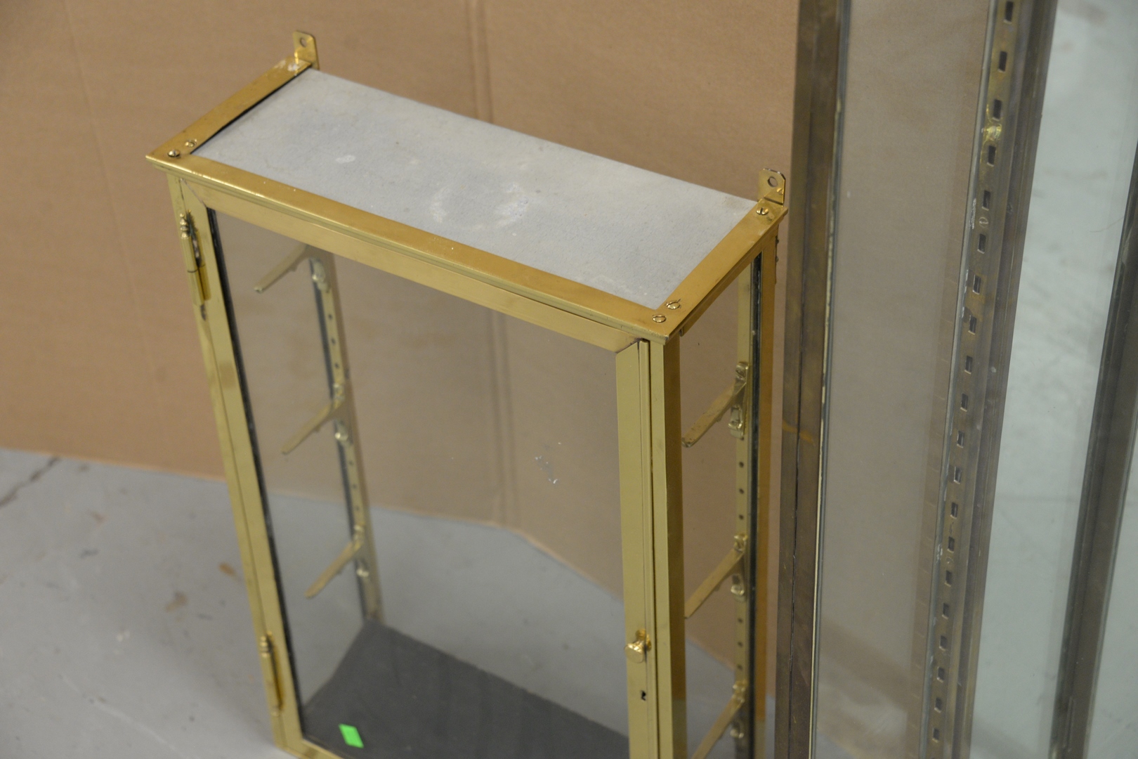 Two Brass and Glass Display Cases no shelves, 39 x 16 and 24 x 16 1/2.