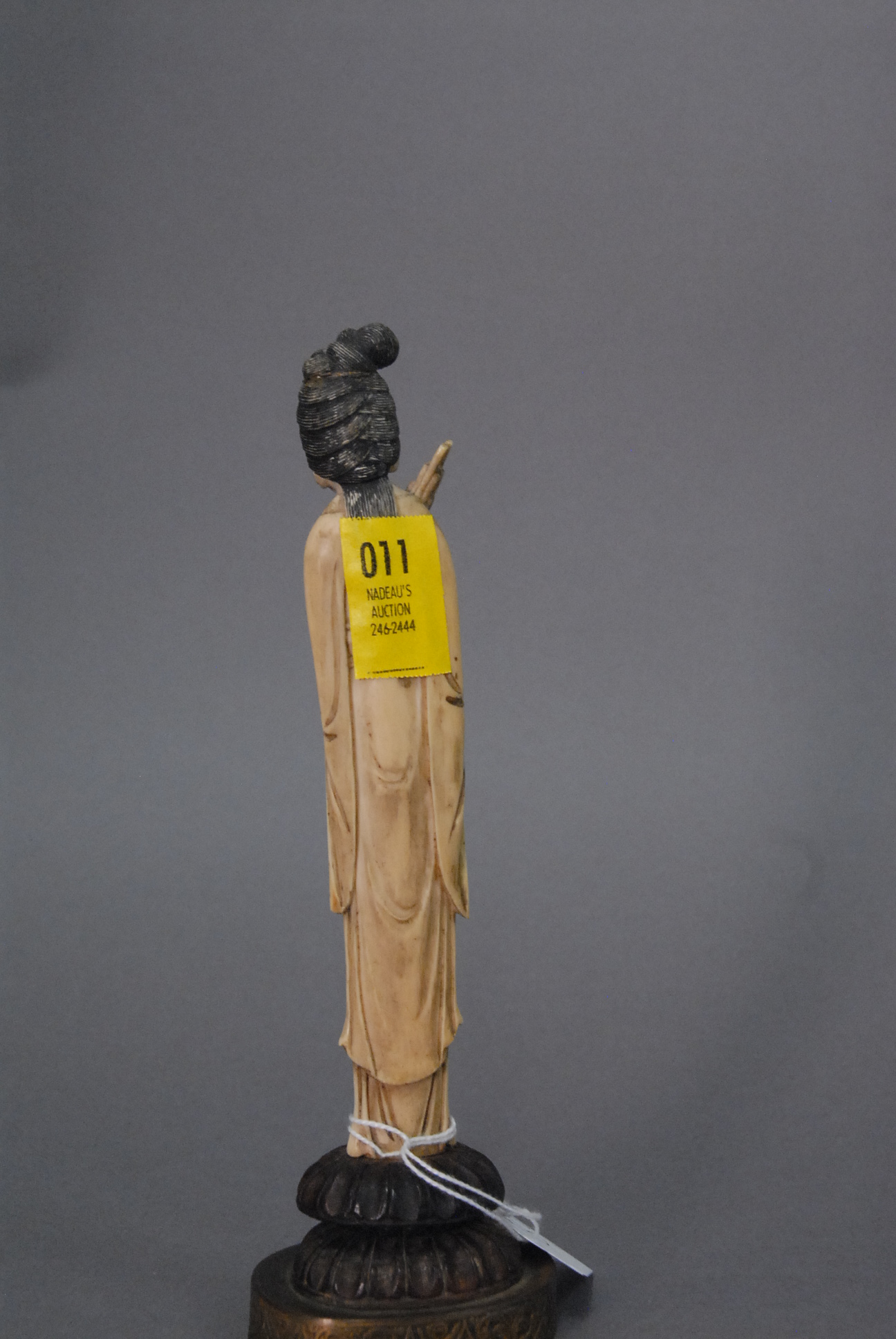 Carved ivory maiden figure holding flute 19th century, ht. with base 8 1/2.