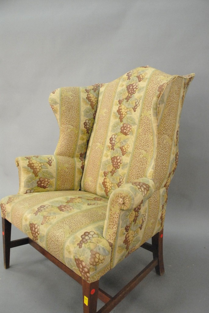 Federal style upholstered wing chair attributed to Whitmore, Middletown, Connecticut.