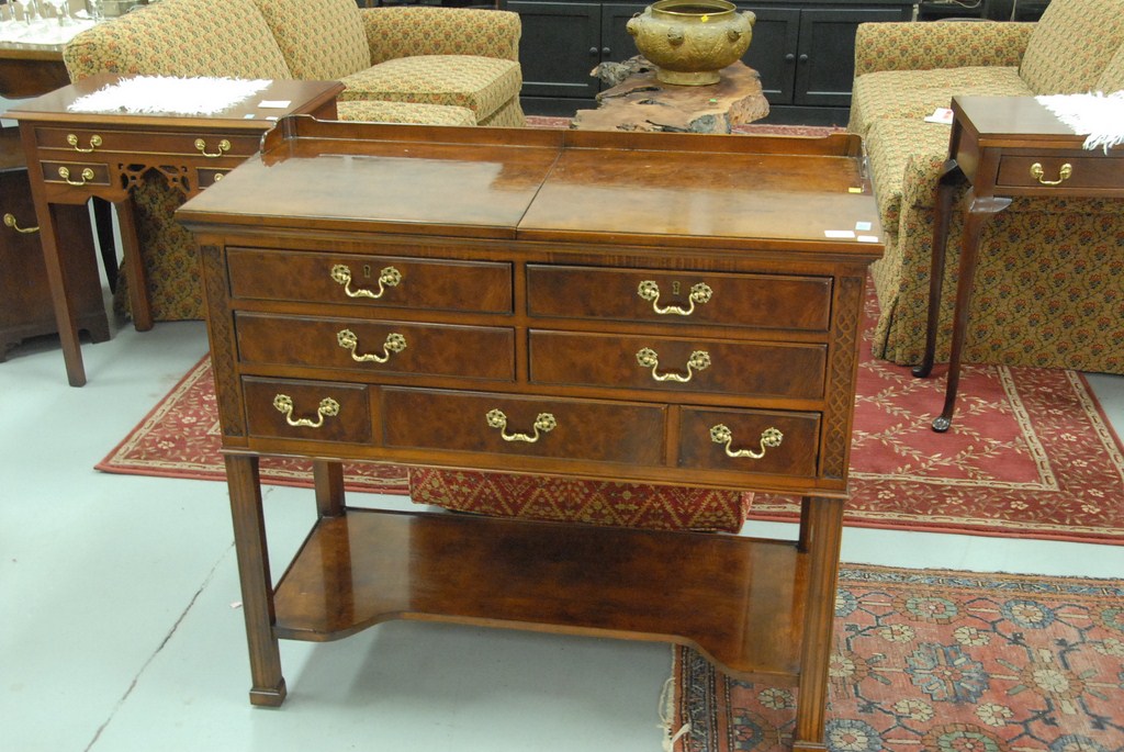 Henredon burl wood server / bar with lift top, ht. 36in. wd. 40in.