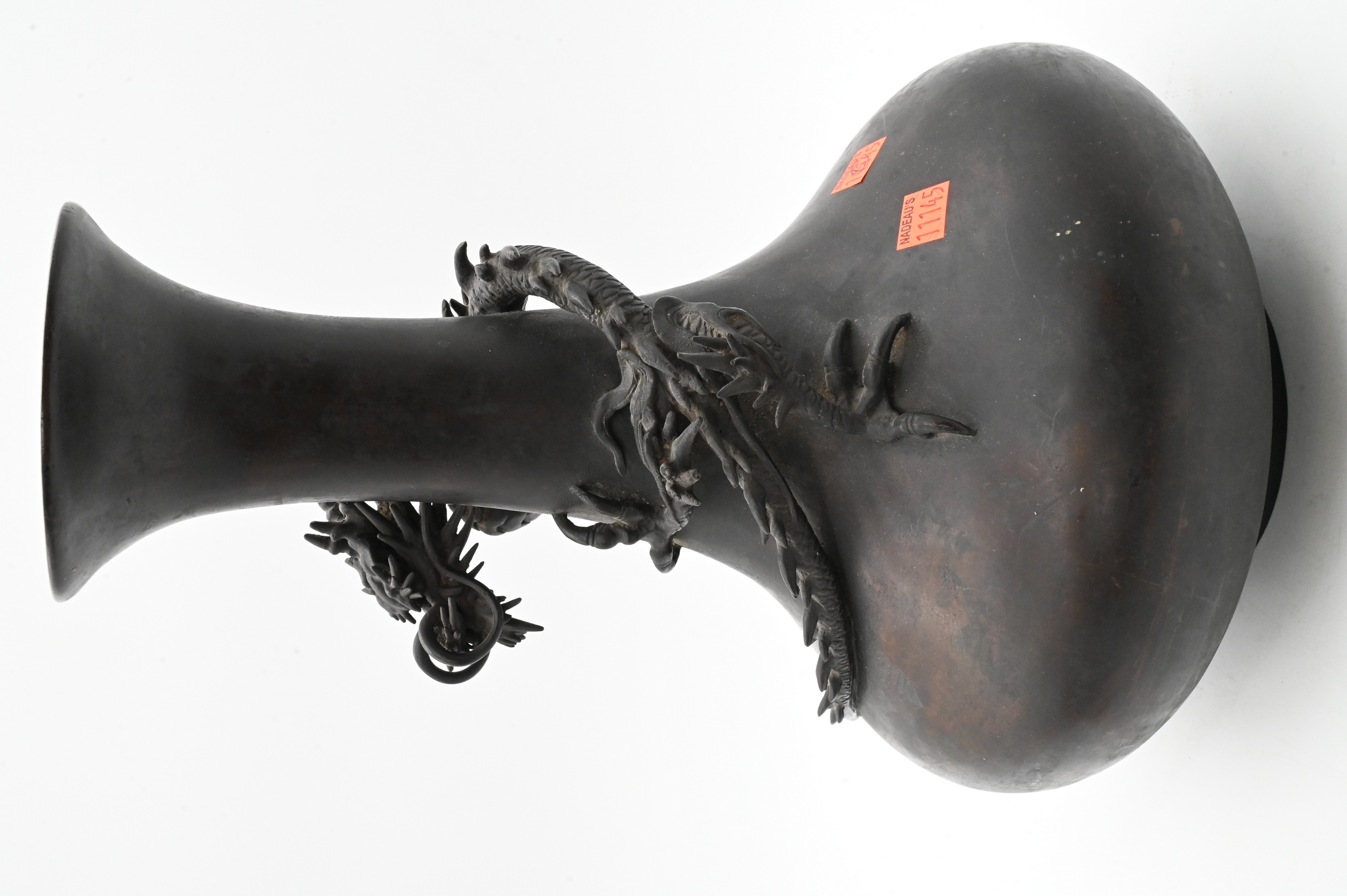 Lot 69: Japanese Meiji Bronze Vase with Applied Dragon