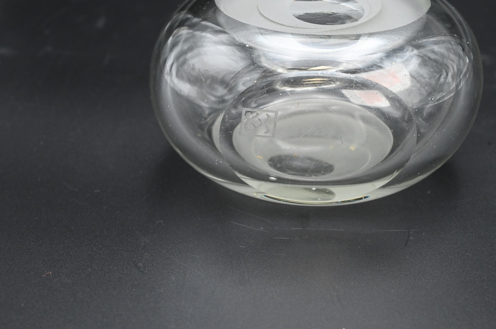 Jean Luce (1895-1964), clear glass vase with etched design, height 6 inches,