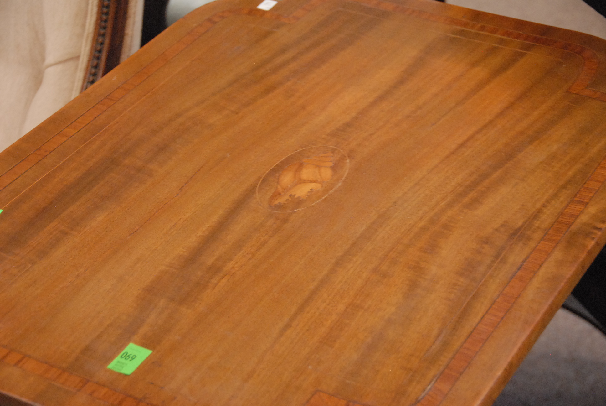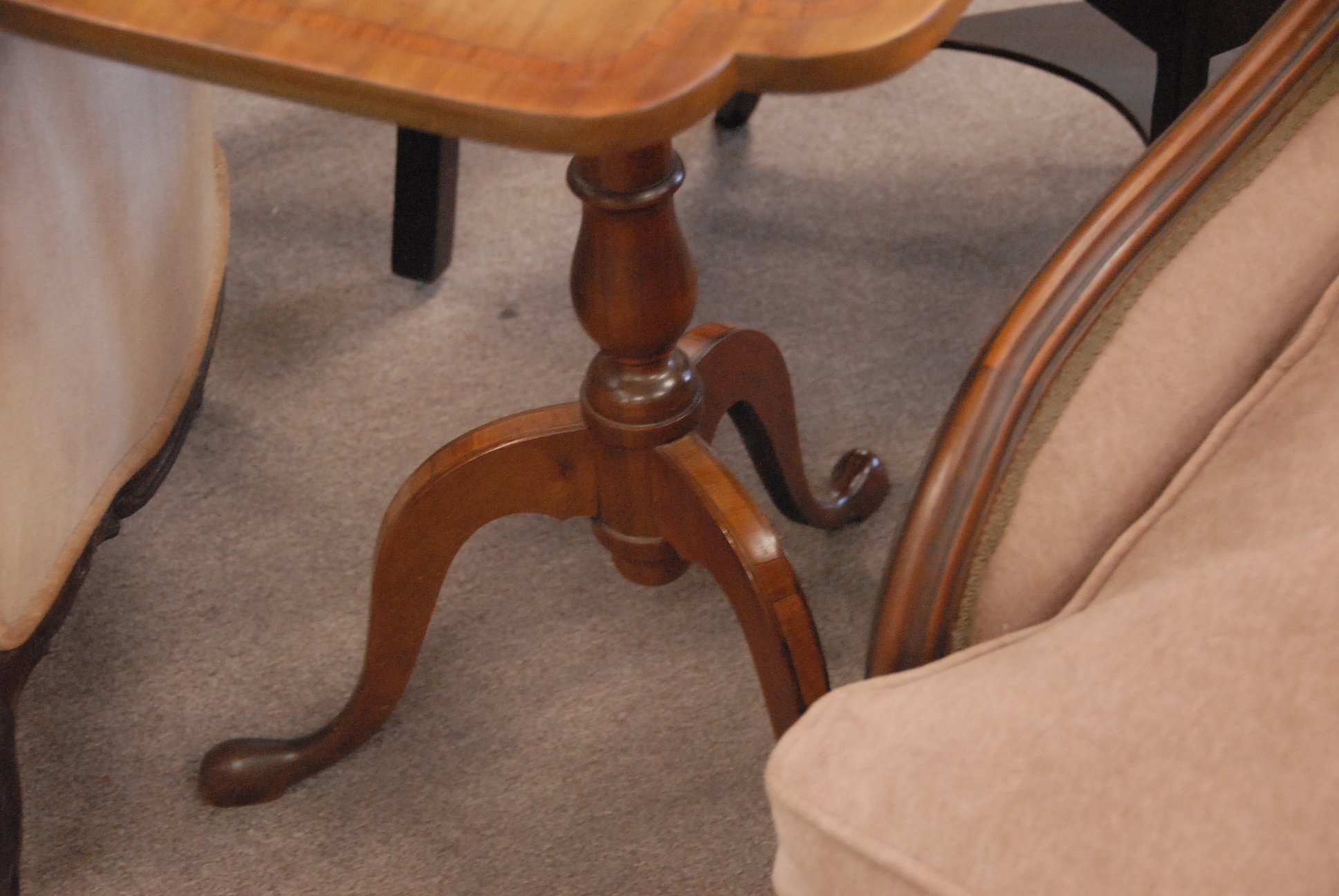 Mahogany inlaid tip top table with conch shell inlaid center.