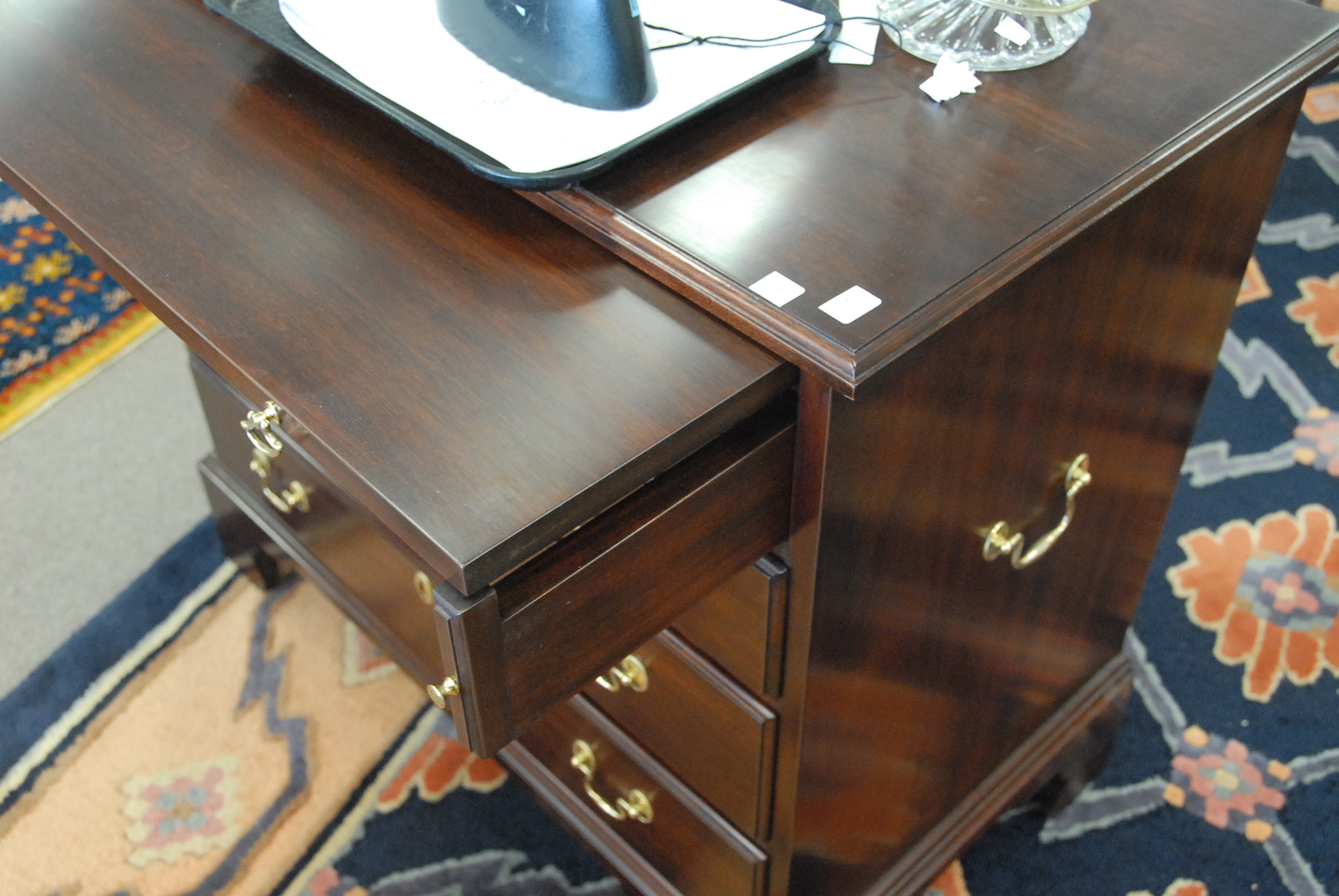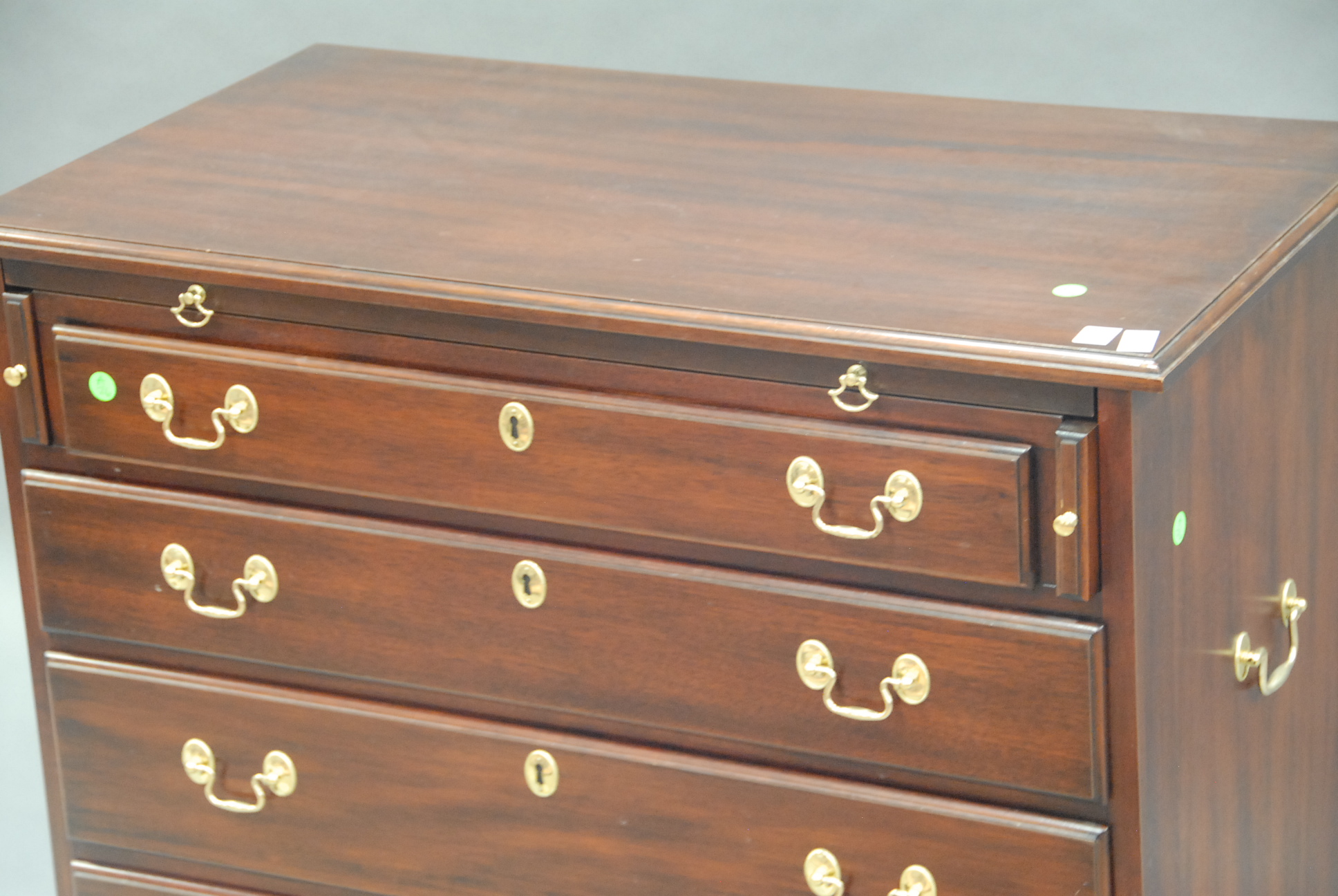 Pair of Henkel Harris mahogany bachelor’s chests, Chippendale style with pull out slide.