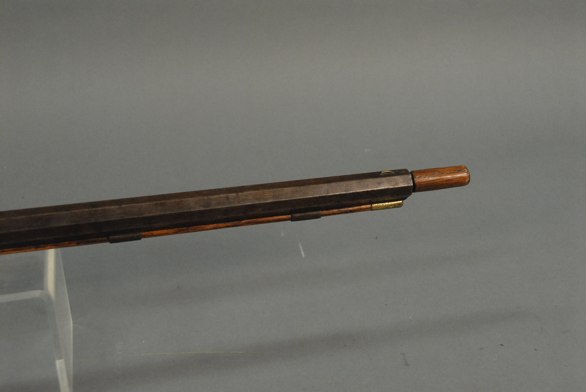 Short Kentucky percussion rifle having octagon barrel with maple stock and brass patch box, no visible makers mark, barrel lg. 24.