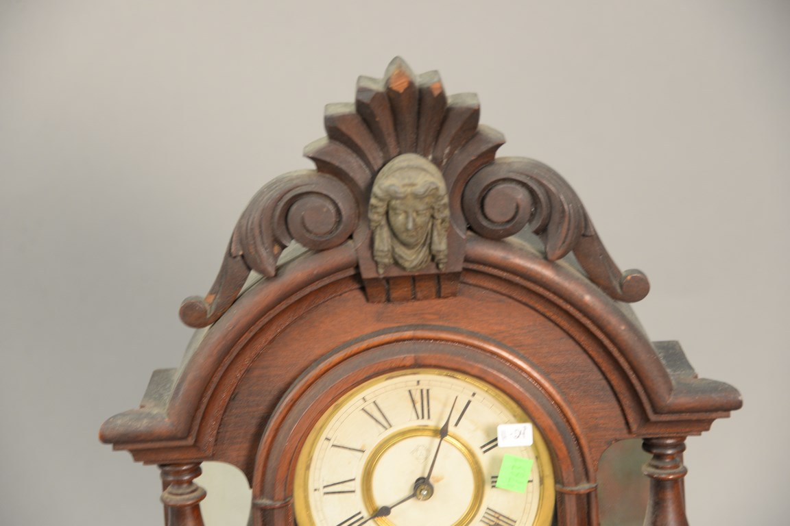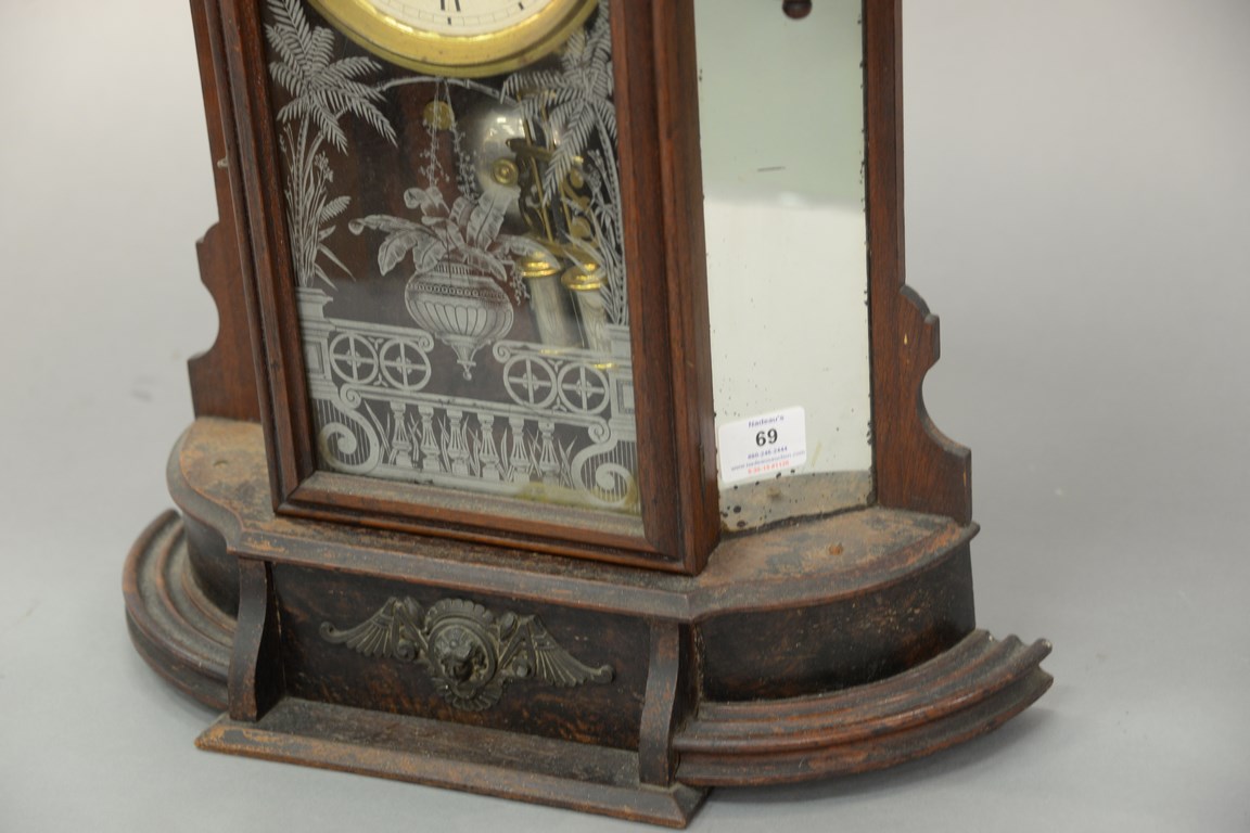 Victorian walnut clock with mirrored sides. ht. 24 in.