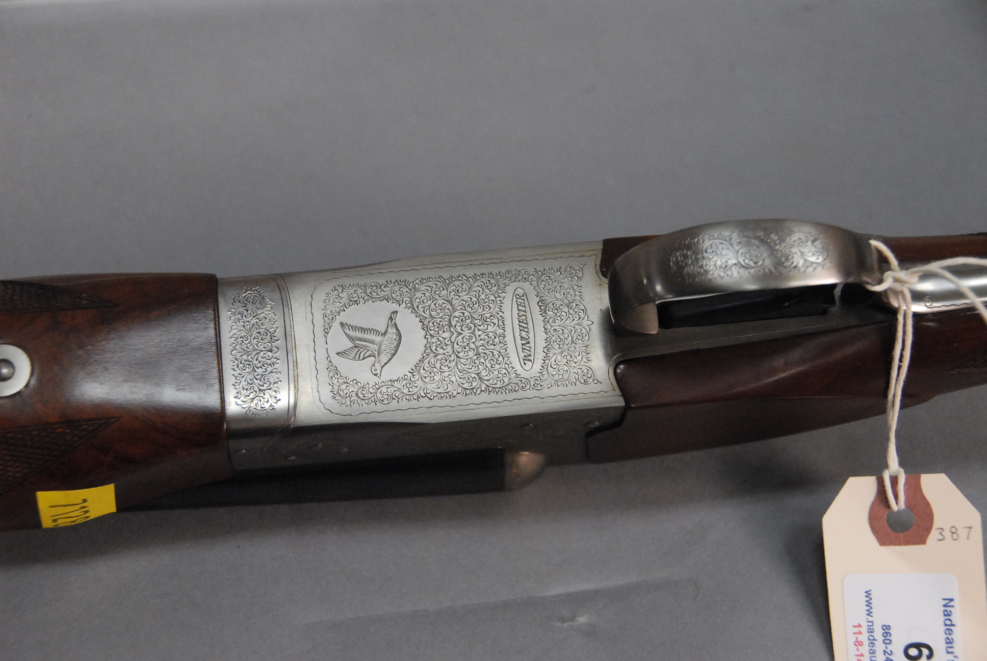 Lot 69: Winchester XTR lightweight model 23 shotgun, 20 gauge side by side with nickel finish receiver, 25 1/2 barrels, s/n 204633 387.