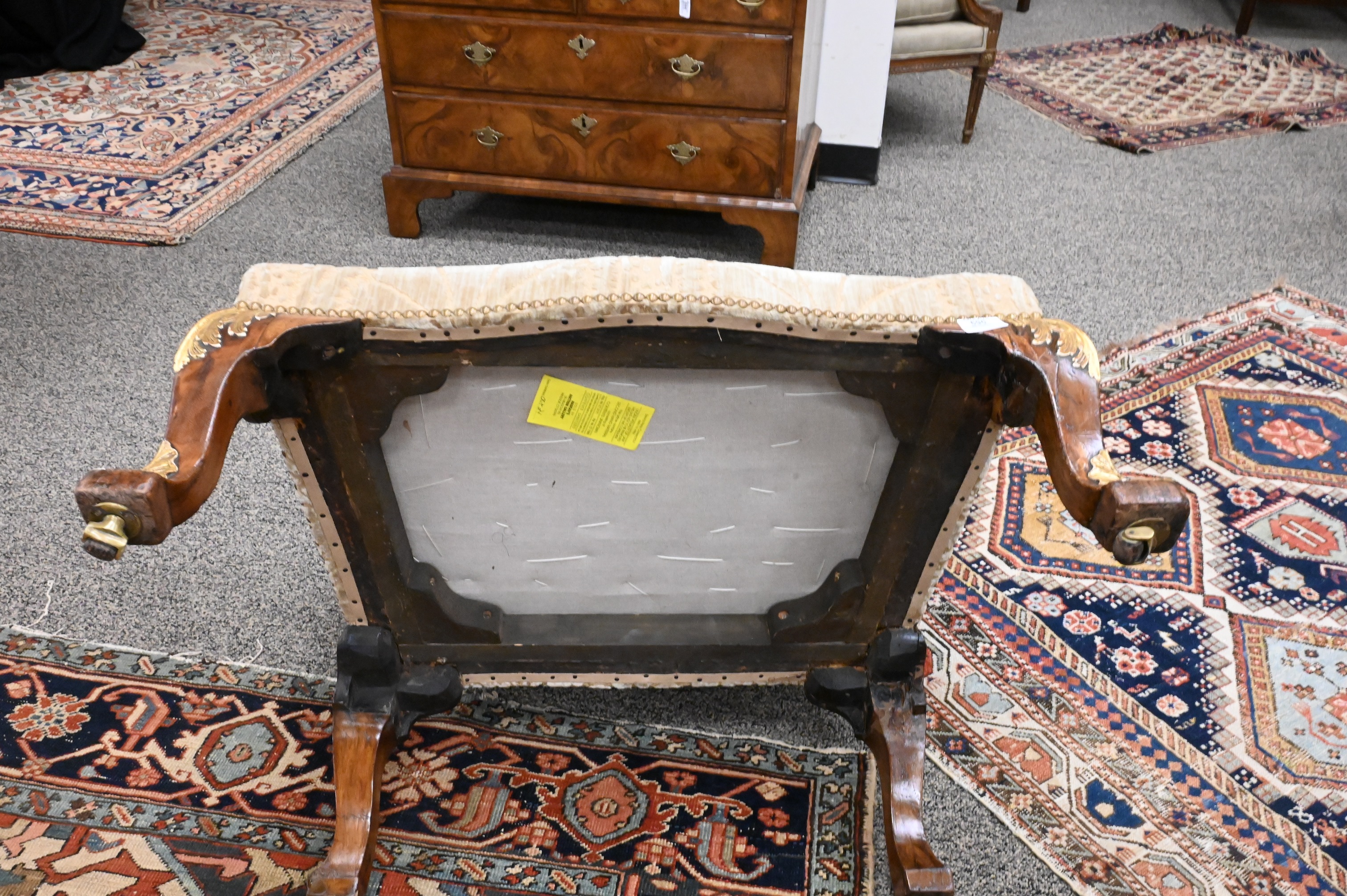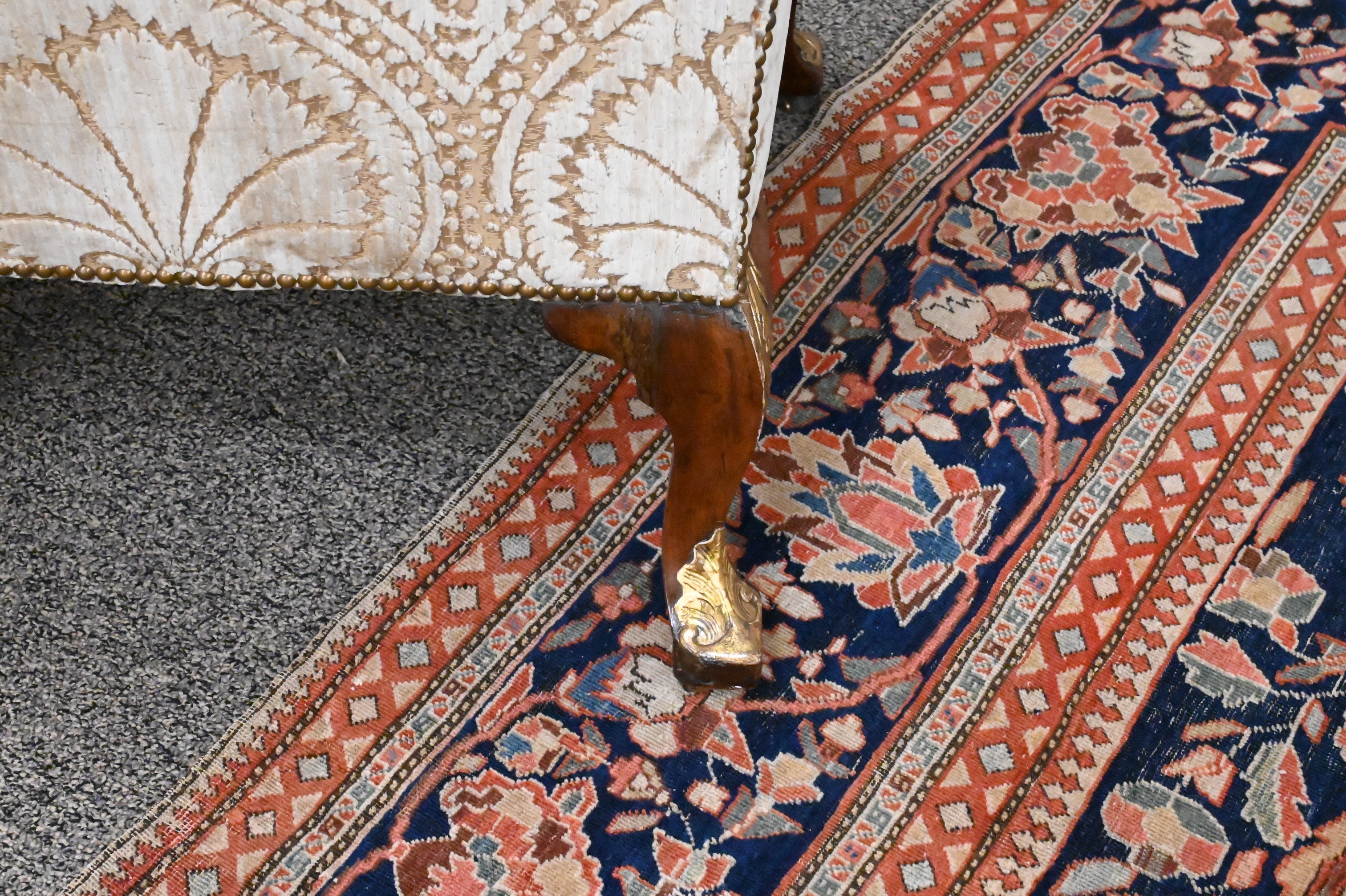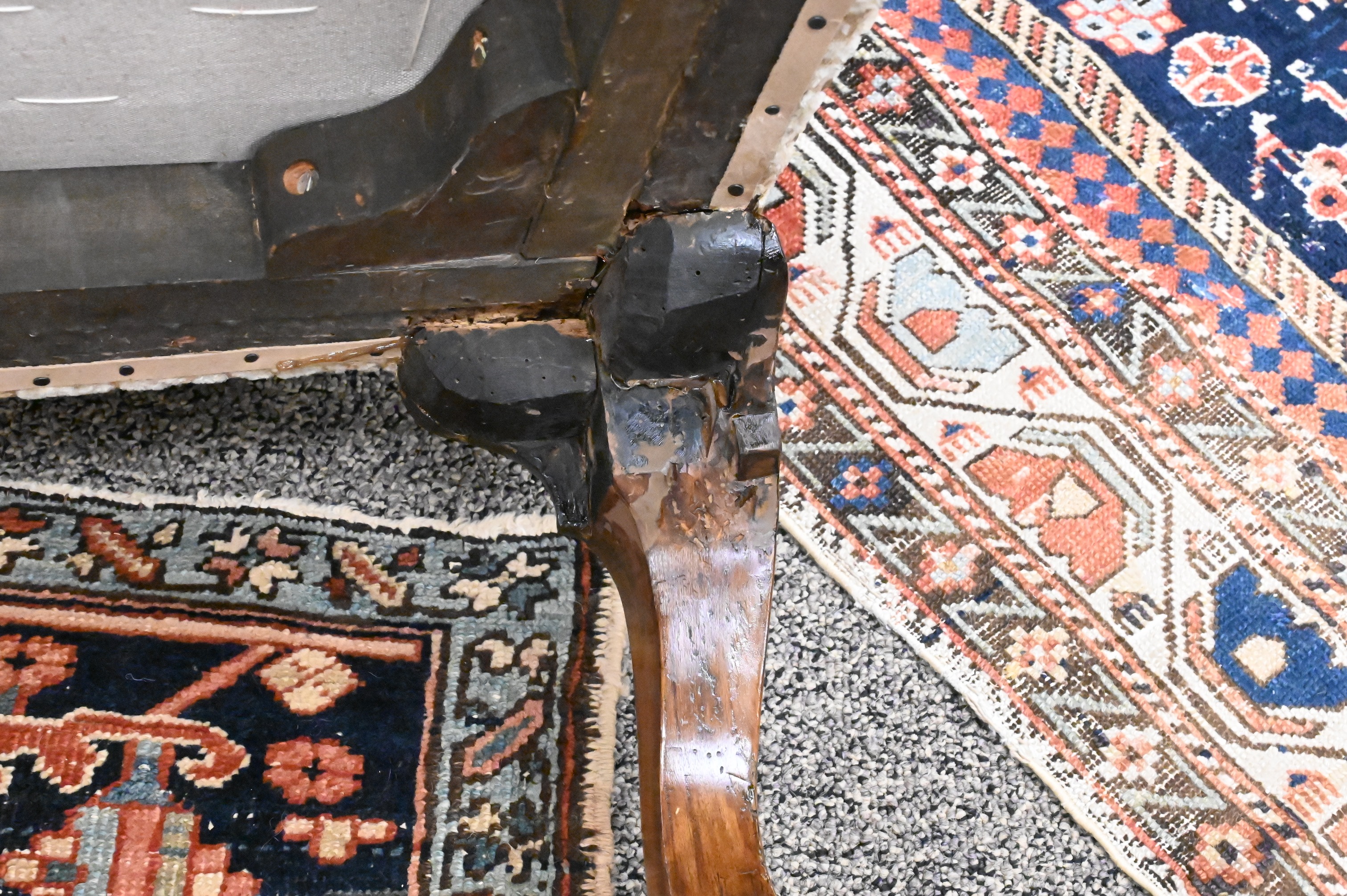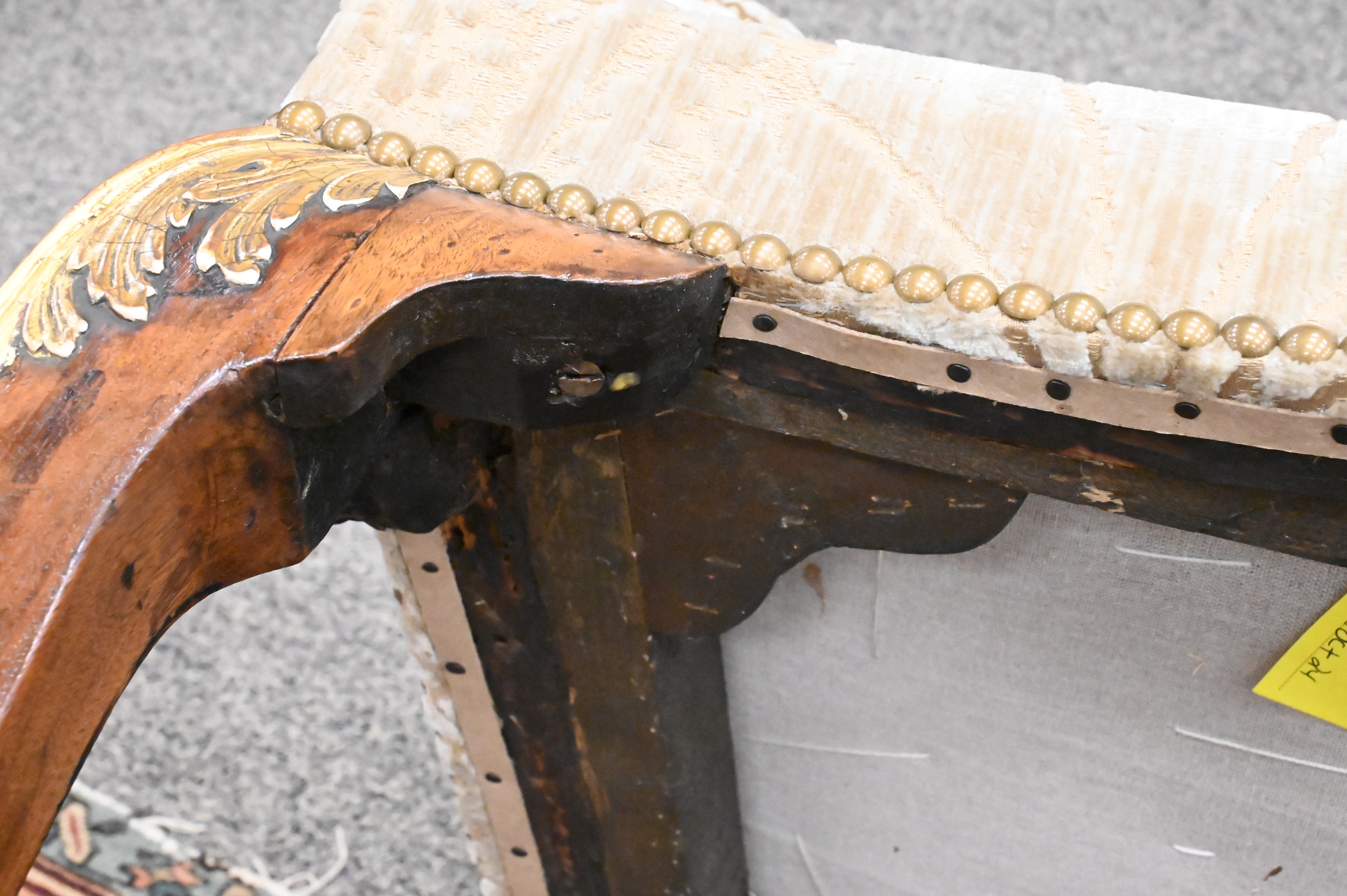 on carved cabriole legs with gilt foliate and shell carving, probably late 18th century (frame supported under seat)