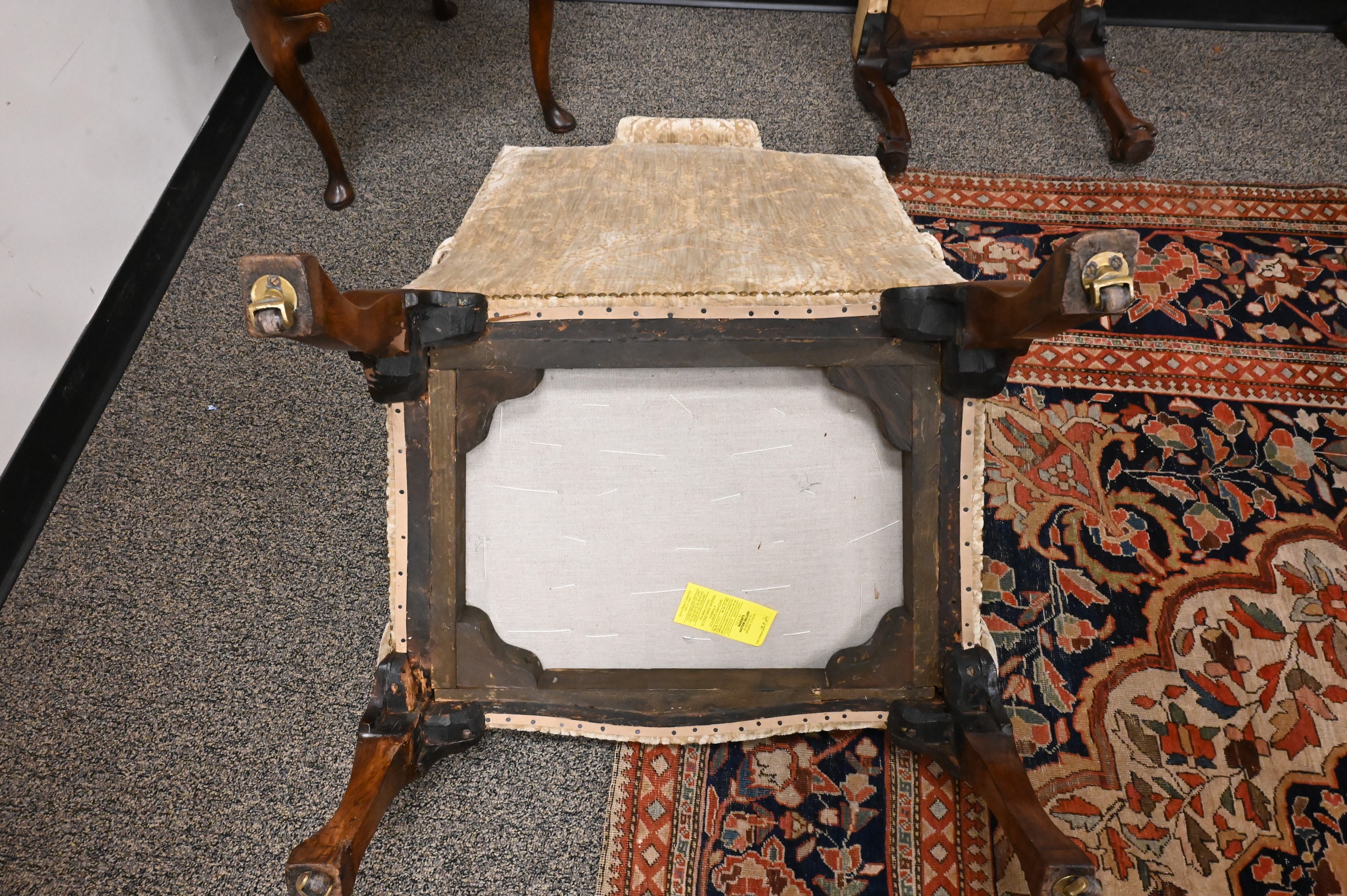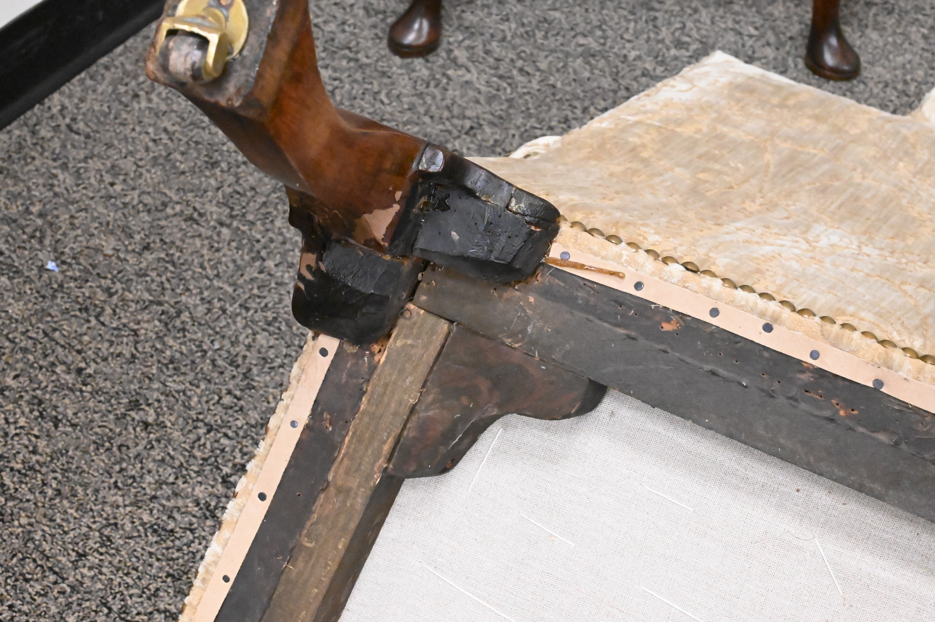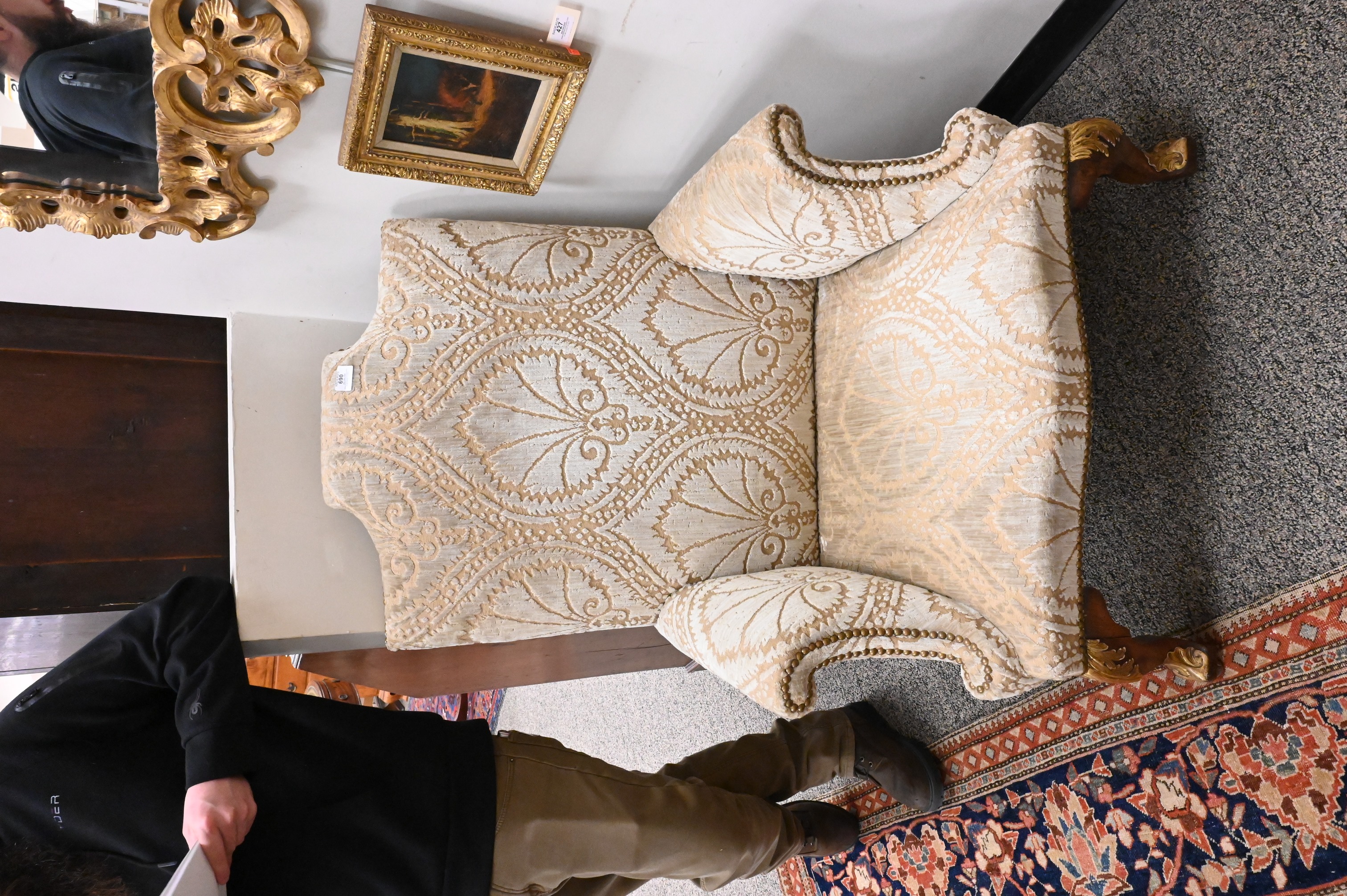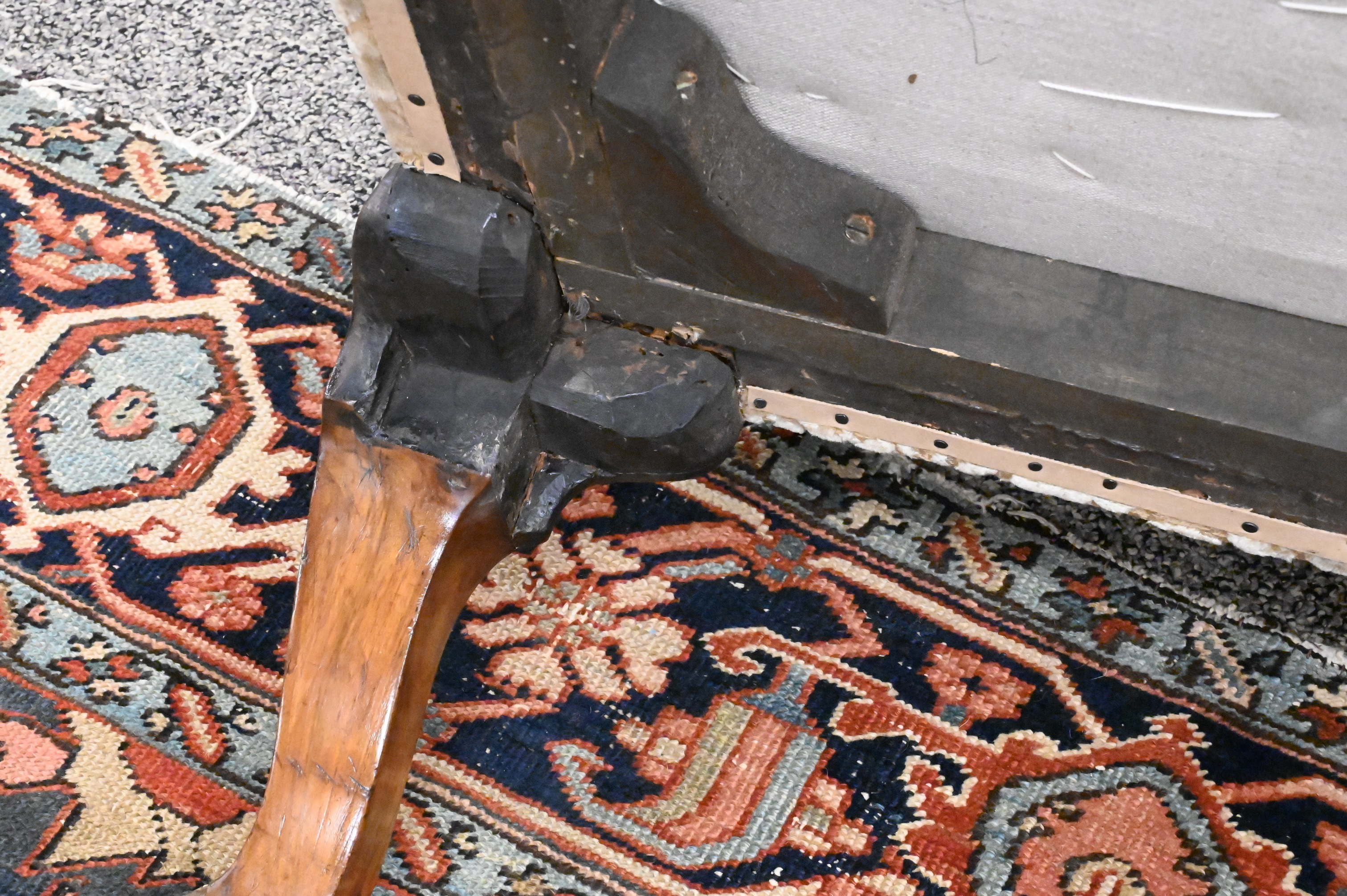 on carved cabriole legs with gilt foliate and shell carving, probably late 18th century (frame supported under seat)