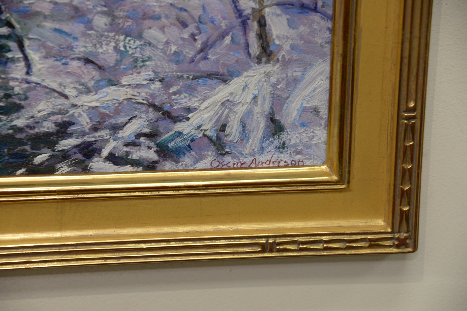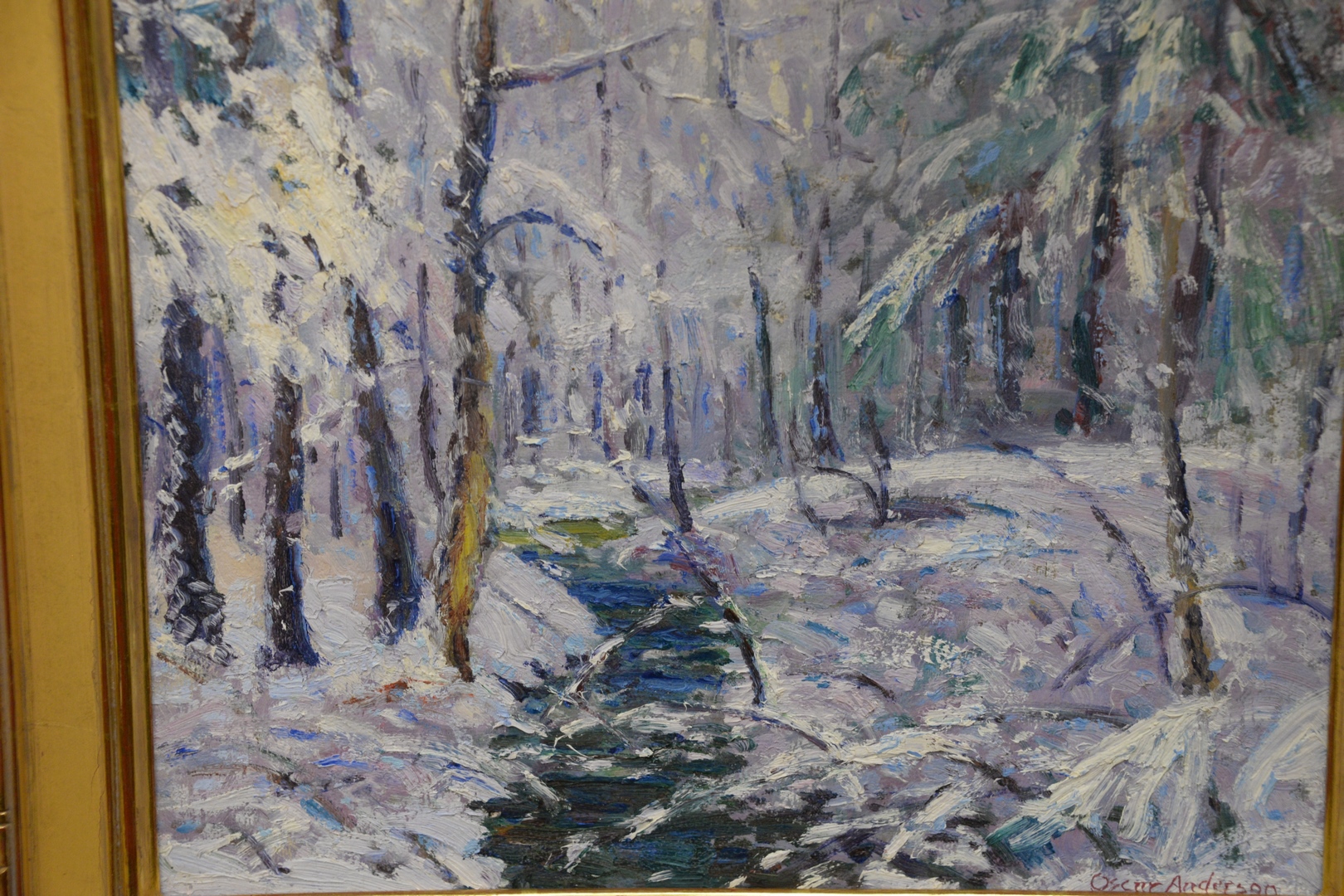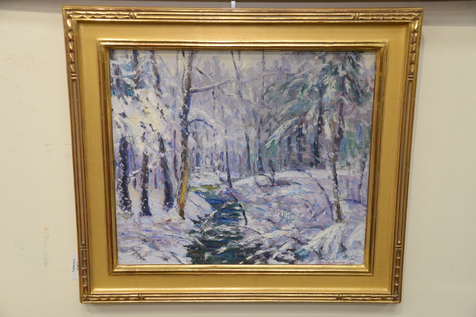 Lot 690: Oscar Anderson American, 1873 – 1953 Melting Snow Landscape oil on board signed lower right 11 1/2 x 13Provenance: Matthes-Theri…