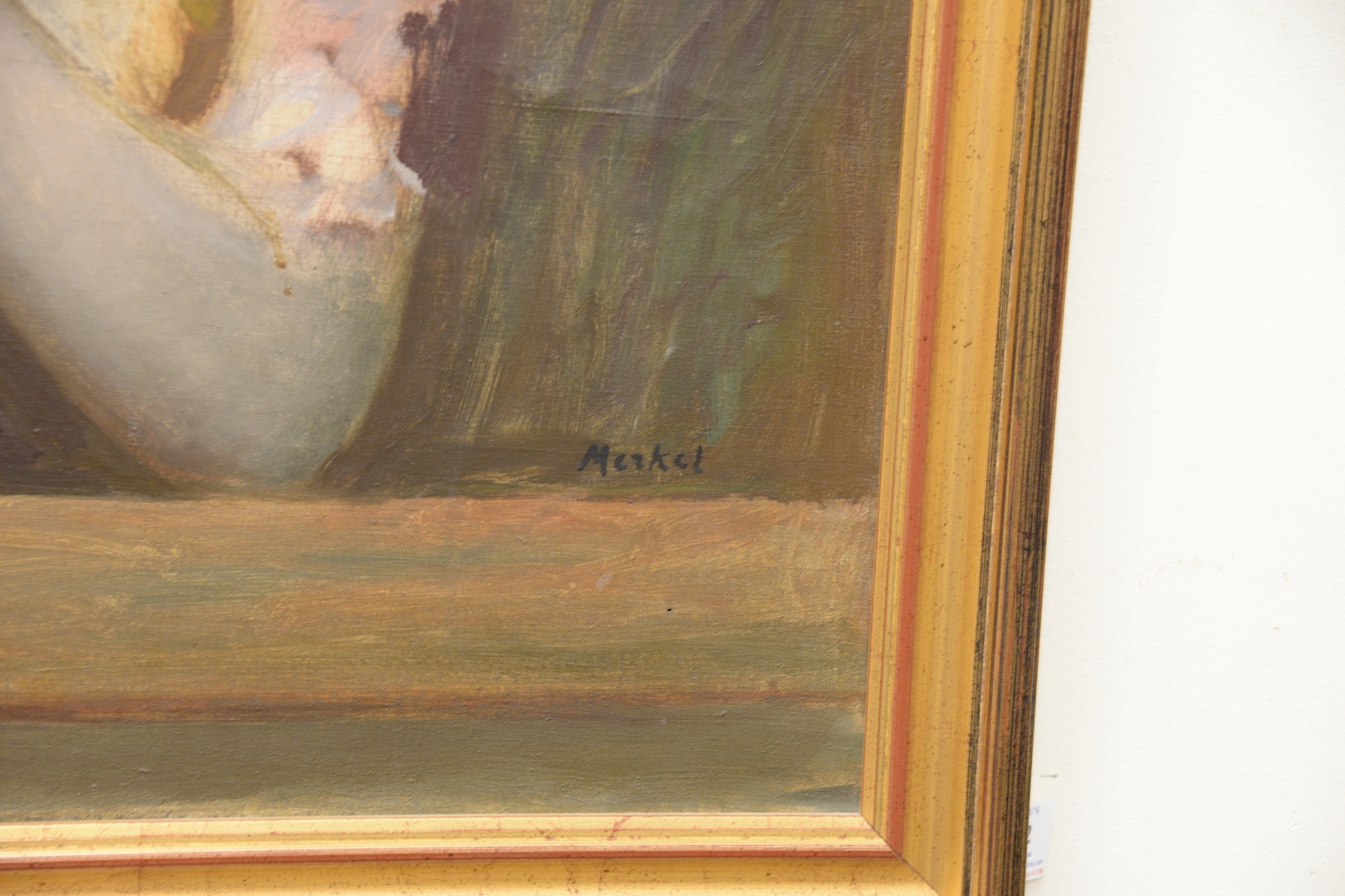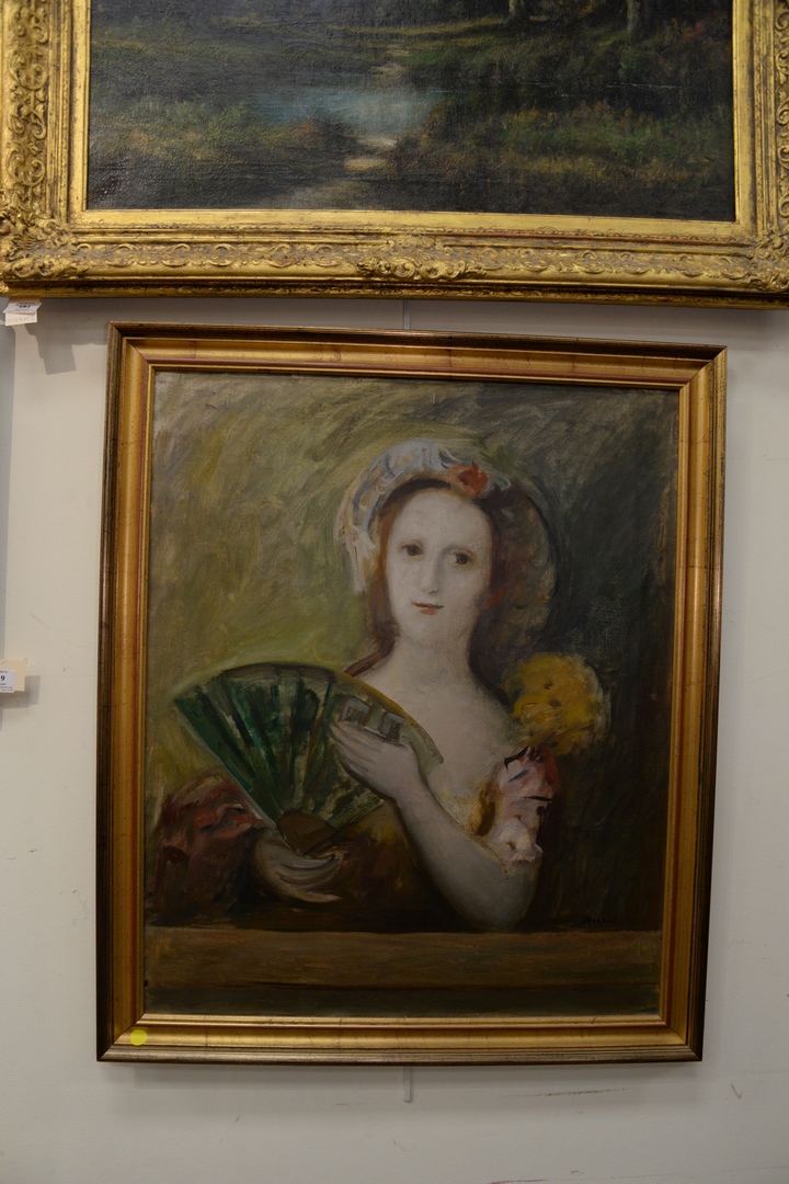 Lot 692: Georg Merkel Ukrainian, 1881 – 1976 Woman with a Fan oil on canvas signed lower right, Merkel 28 3/4 x 23 1/2 Provenan…