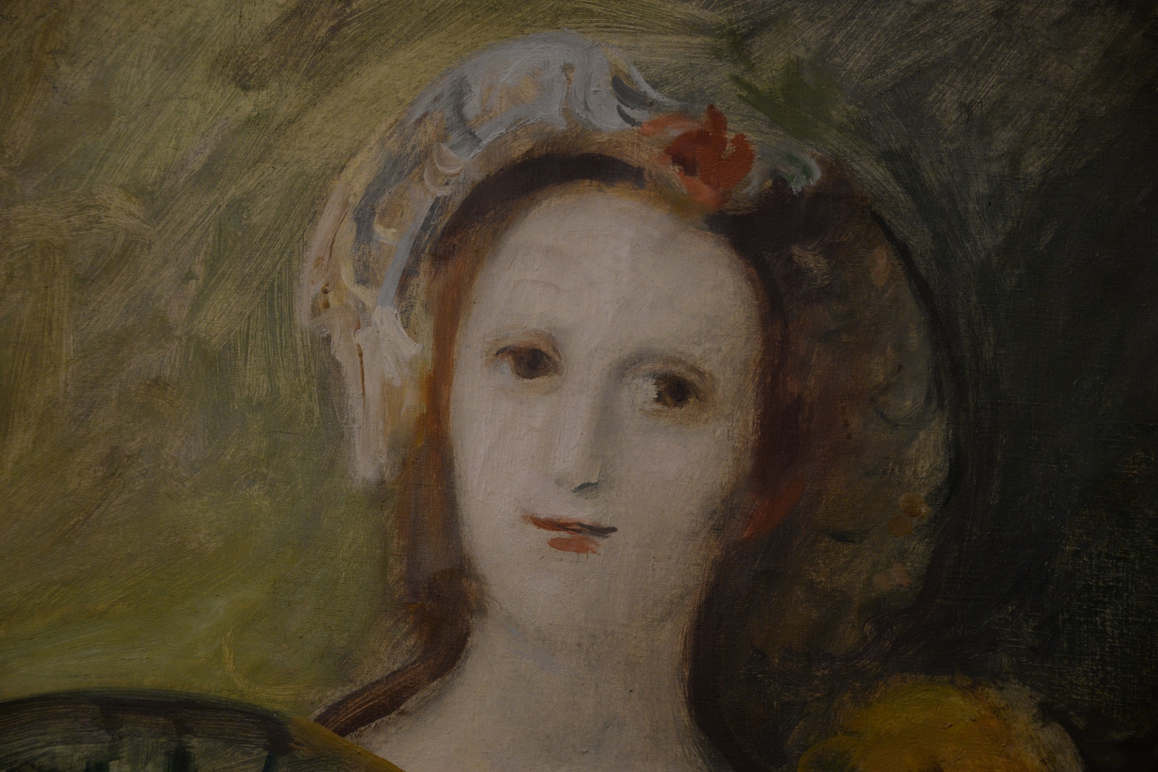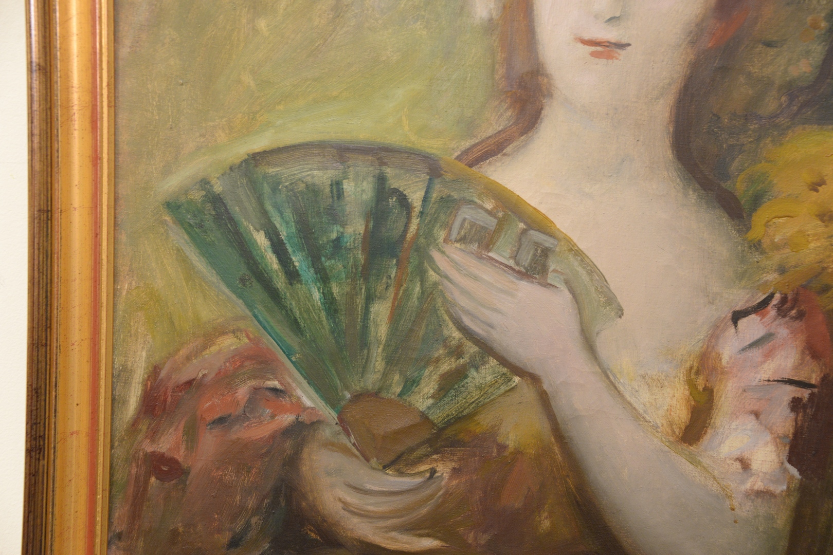 Georg Merkel Ukrainian, 1881 – 1976 Woman with a Fan oil on canvas signed lower right, Merkel 28 3/4 x 23 1/2 Provenance: The Estate of Alina Roisen, Park Avenue, New York