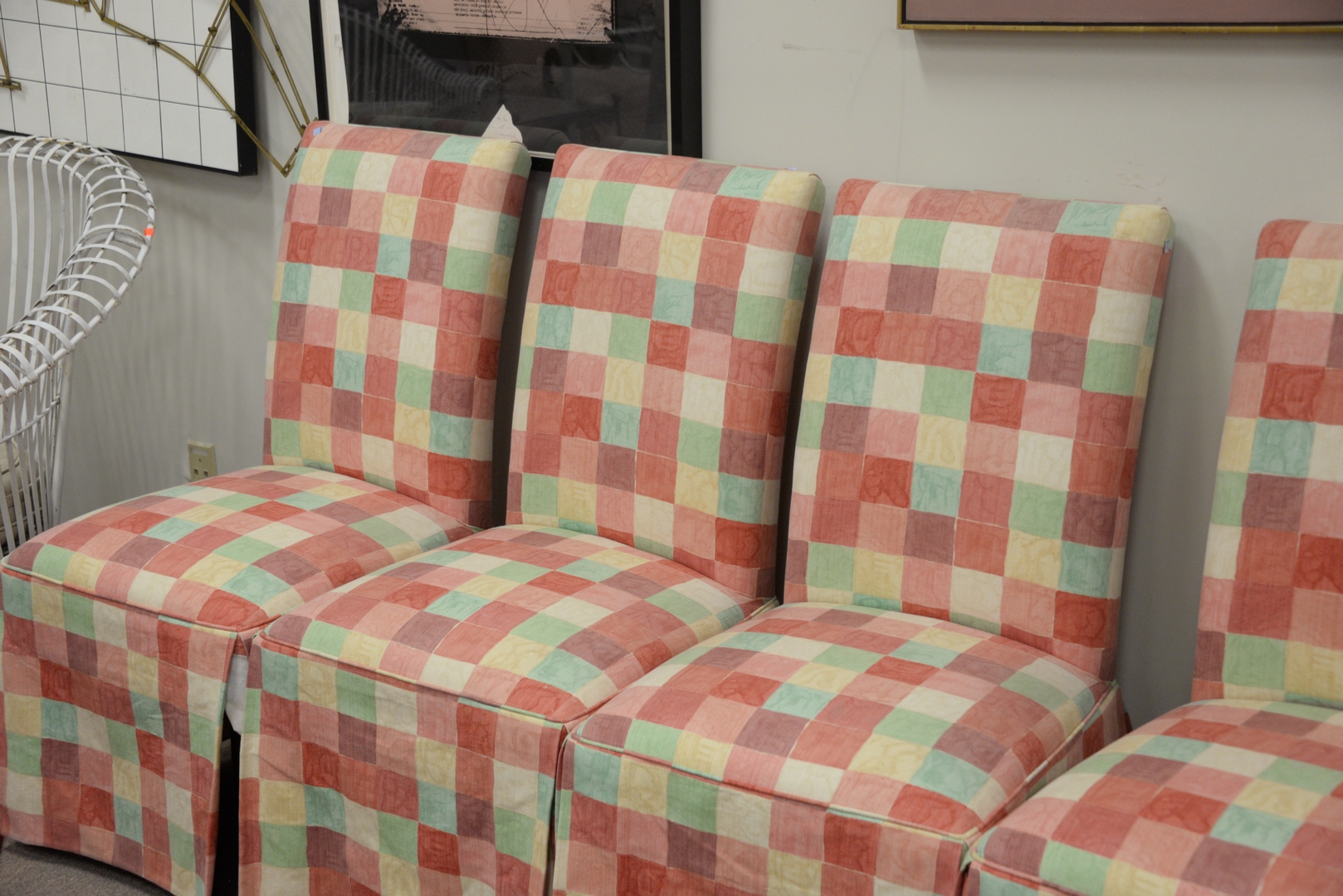 Lot 692: Seven piece lot to include a set of Four Fully Upholstered Dining Chairs, height 40 inches, width 20 1/2 inches, in excellent condi…