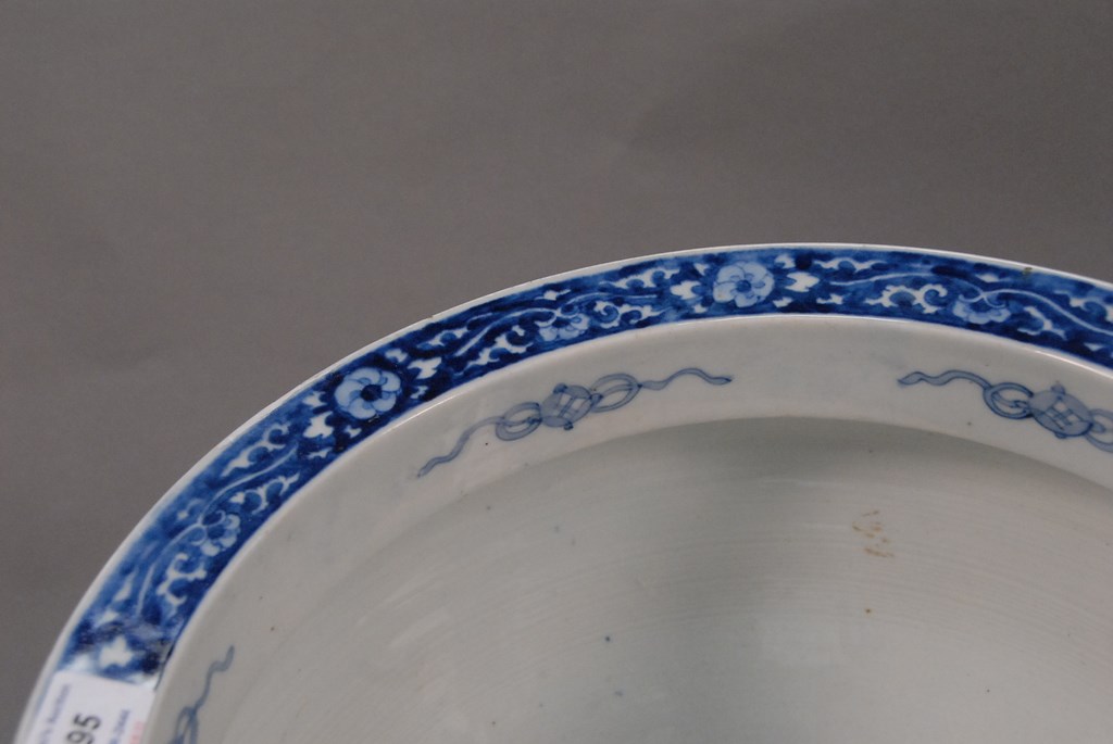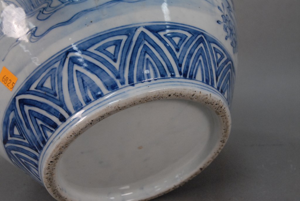 Large blue and white fish bowl, late 19th – 20th century. ht. 11in. dia. 14in.