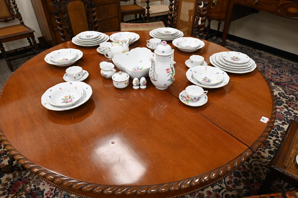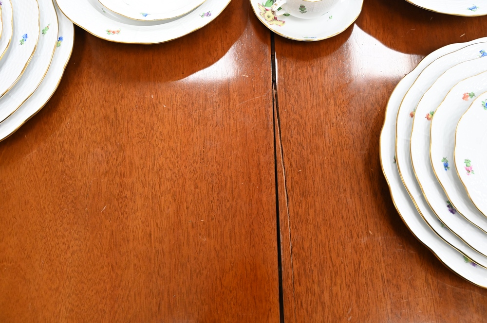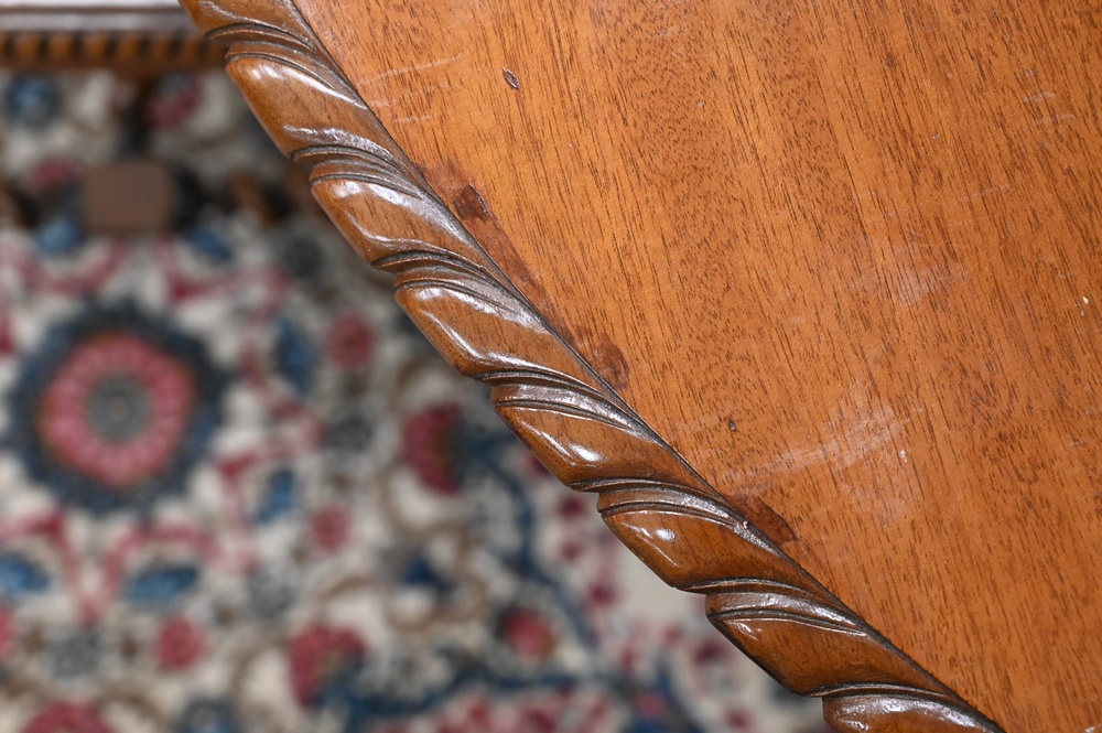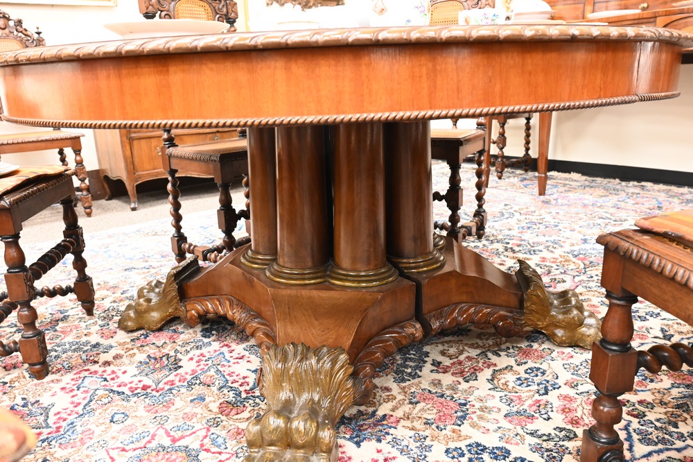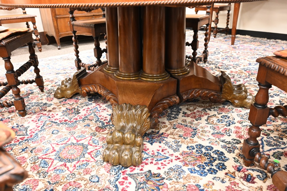 Lot 695: Round Victorian Mahogany Dining Table, on eight column base set on carved platform, large paw feet, top with rope edge, has center s…