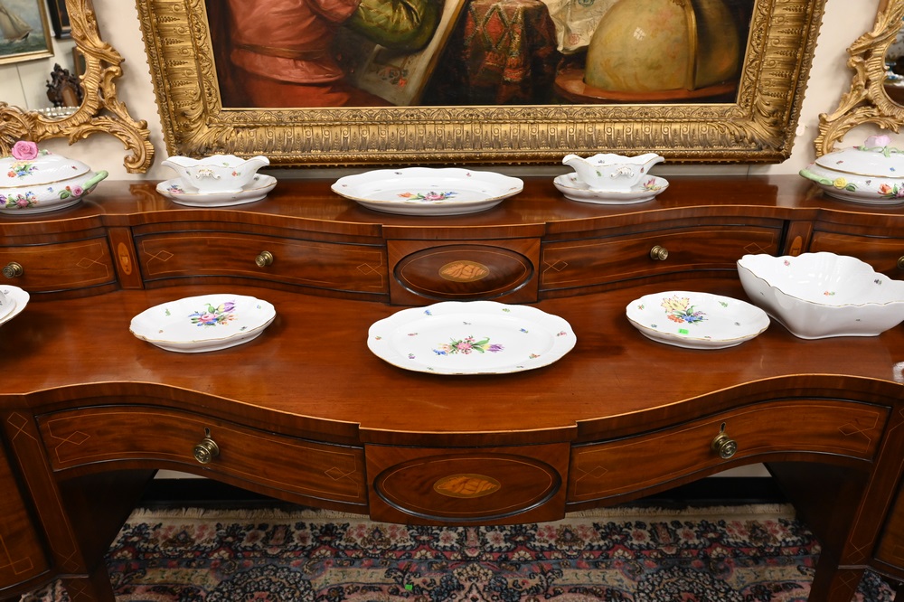 Irish Mahogany Sideboard, having top section with sliding doors on serpentine front case with two drawers and two bottle drawers on square tapered legs ending in spade feet, circa 1800, height 44 inches, width 90 1/2 inches, depth 33 inches.