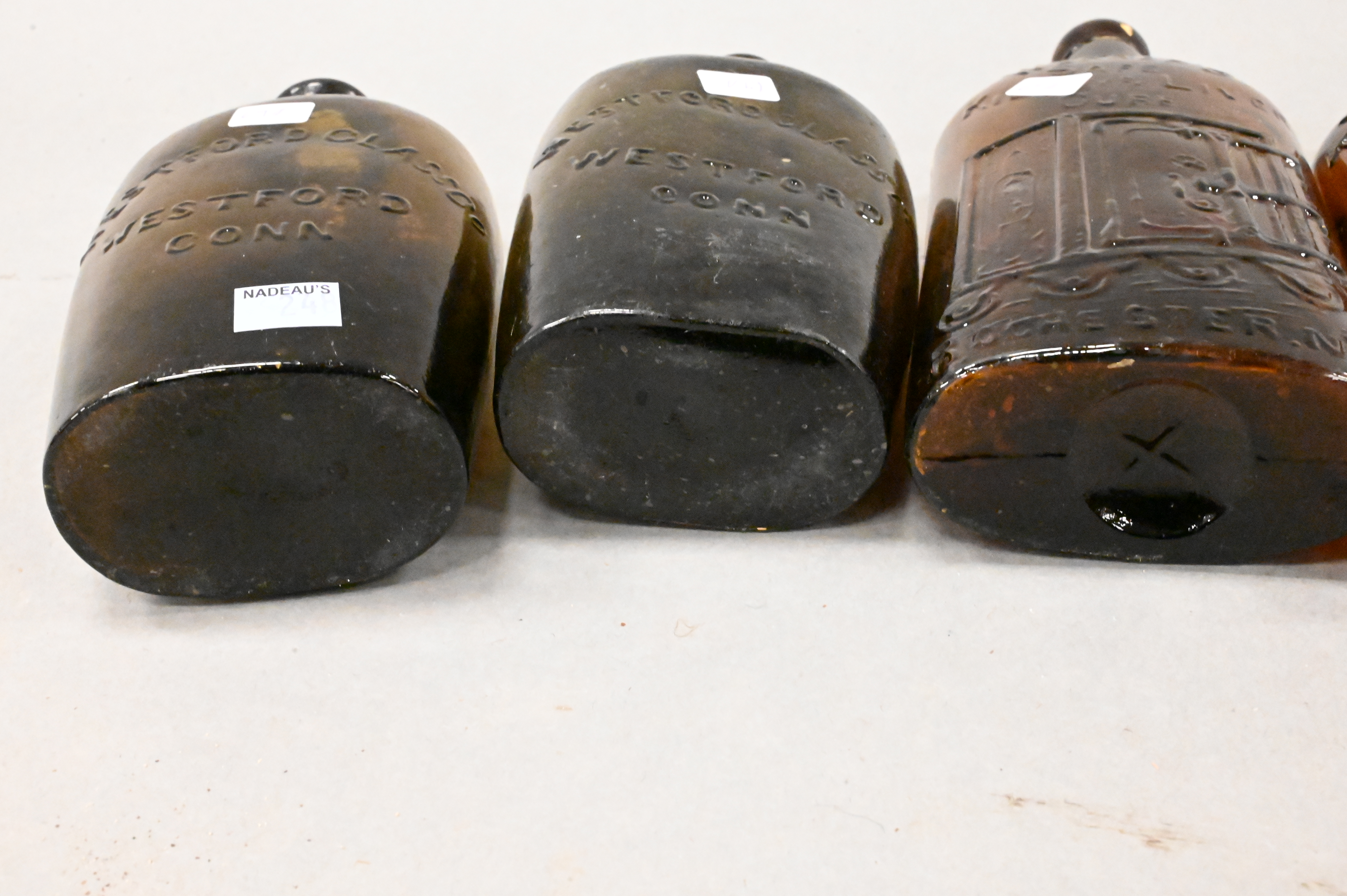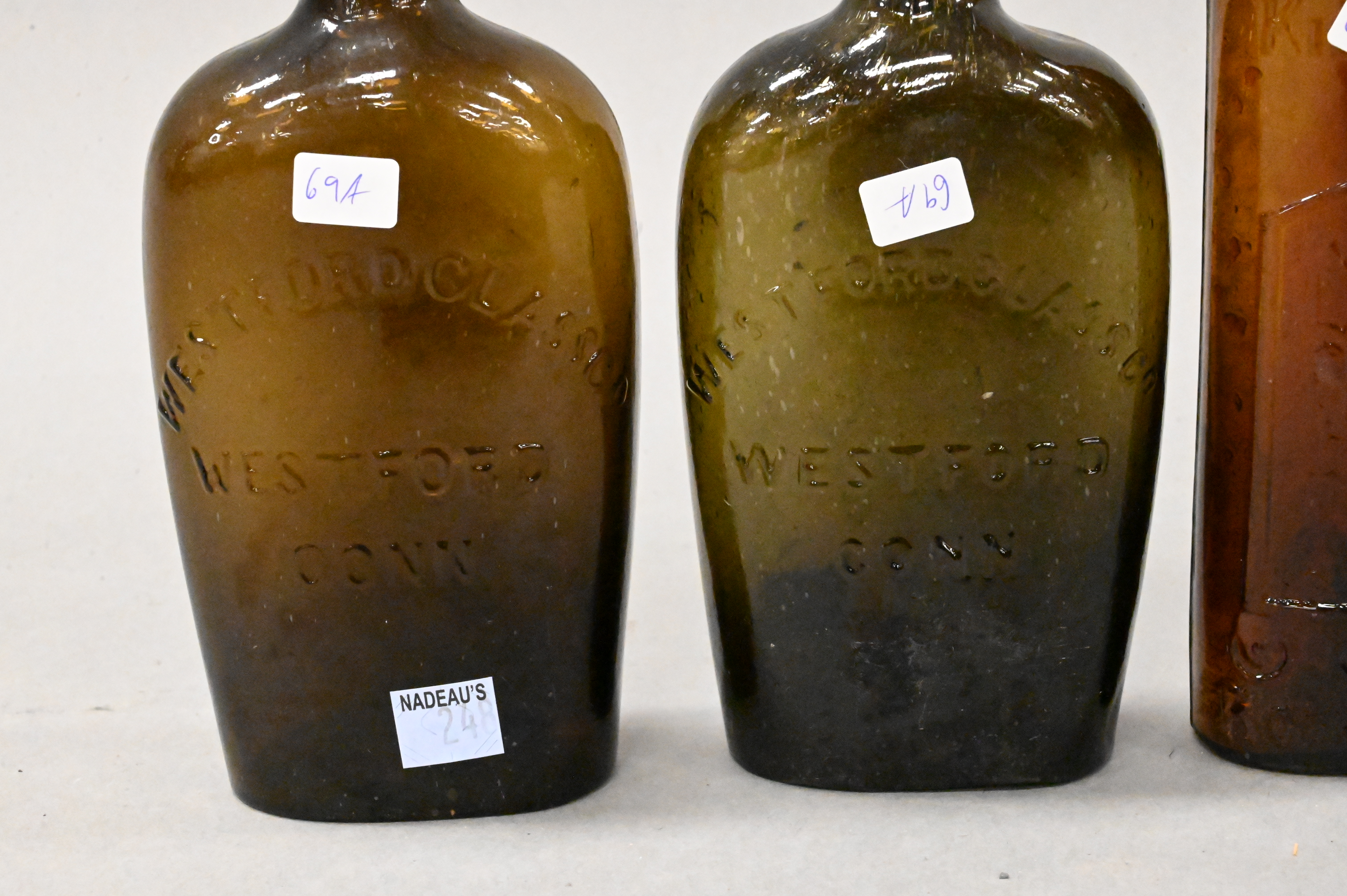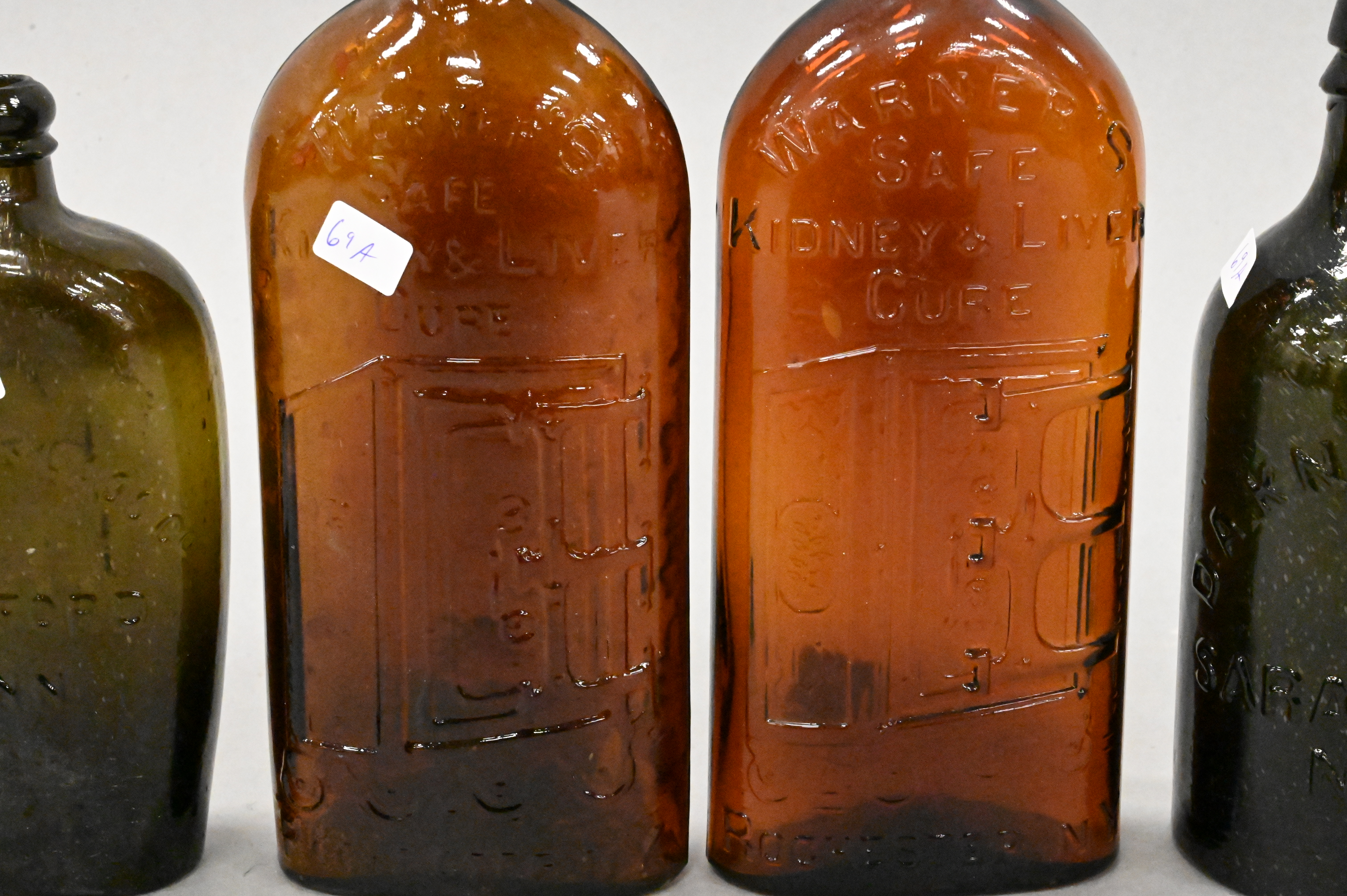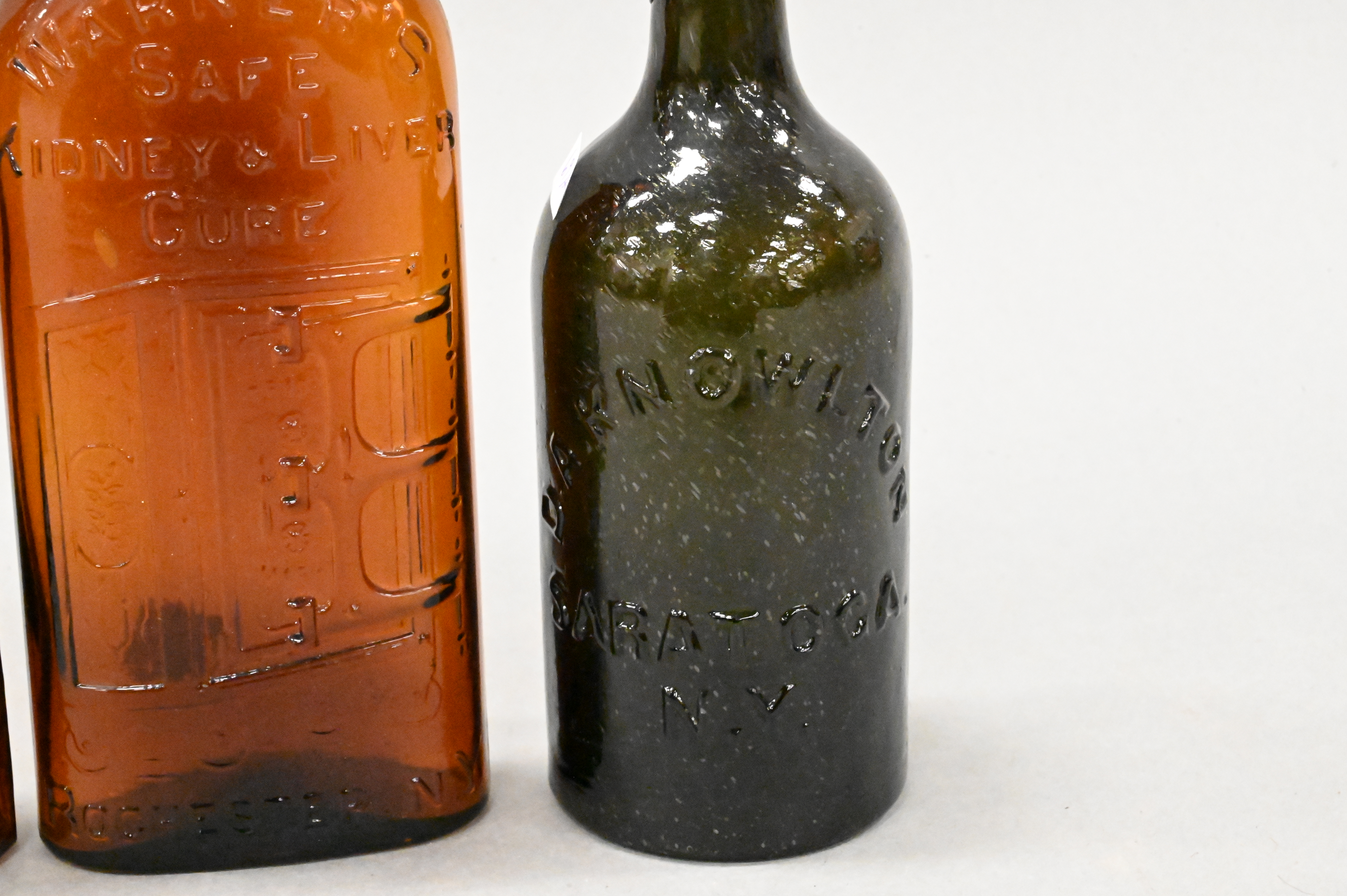to include a pair marked “Warner’s Safe Kidney and Liver Cure, Rochester, N.Y.,” one marked “D.A. Knowlton, Saratoga, N.Y.,” along with another pair marked “Westford Classic, Westford Connecticut”