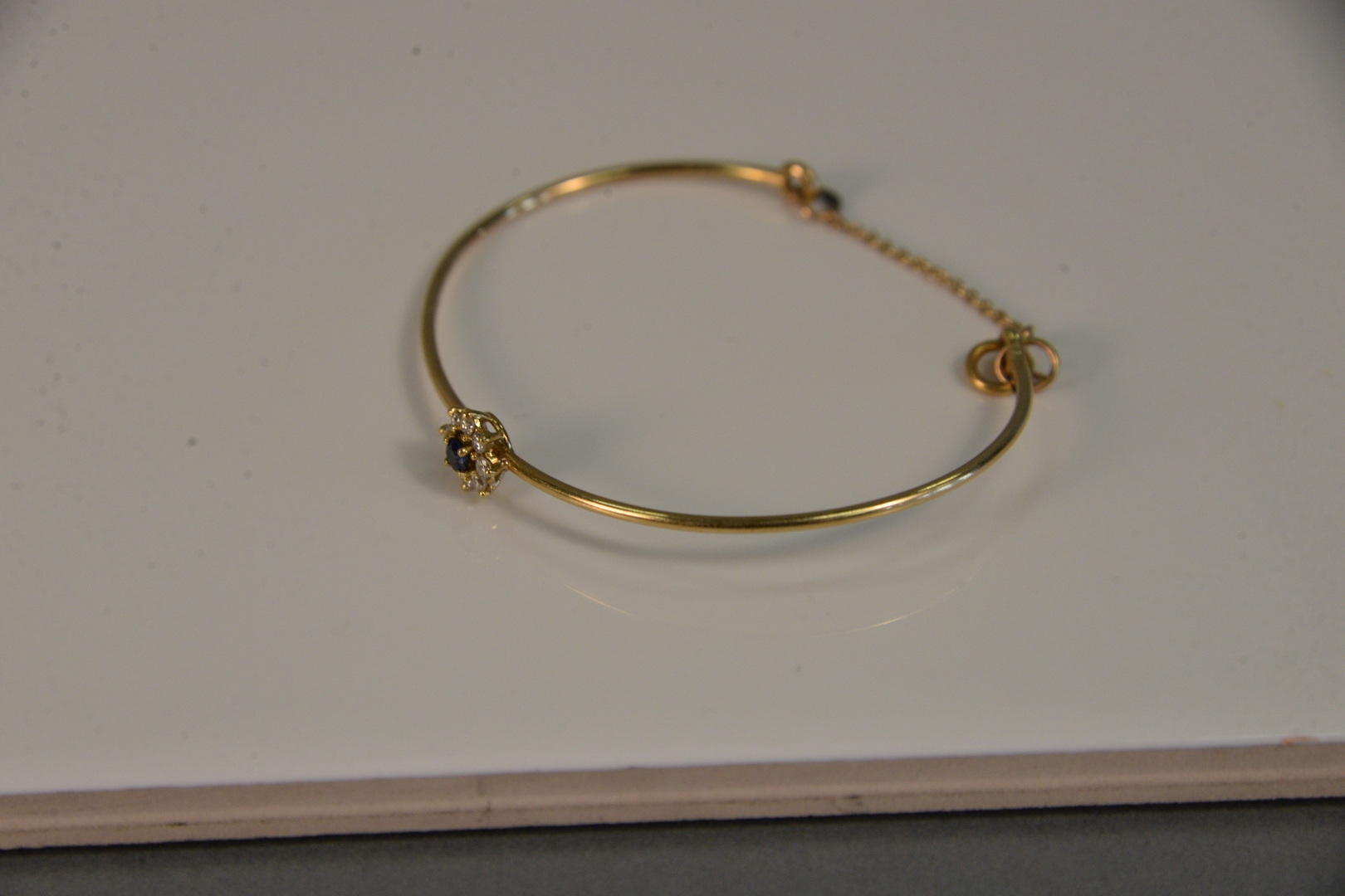 Lot 7: 14K bracelet set with blue stone surrounded by eight diamonds. 5.4 grams Provenance: The Estate of Diana Atwood Johnson